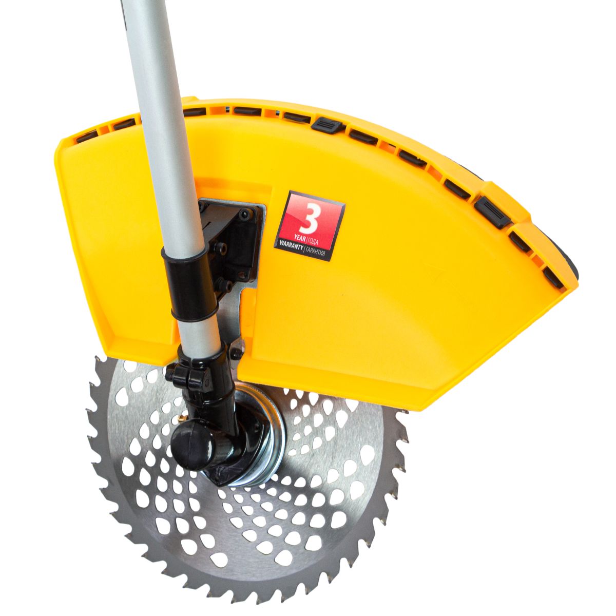 - Безопасность — кожух из прочного PA-пластика защищает пользователя от вылетающей травы, камней, веток и мелких частиц.