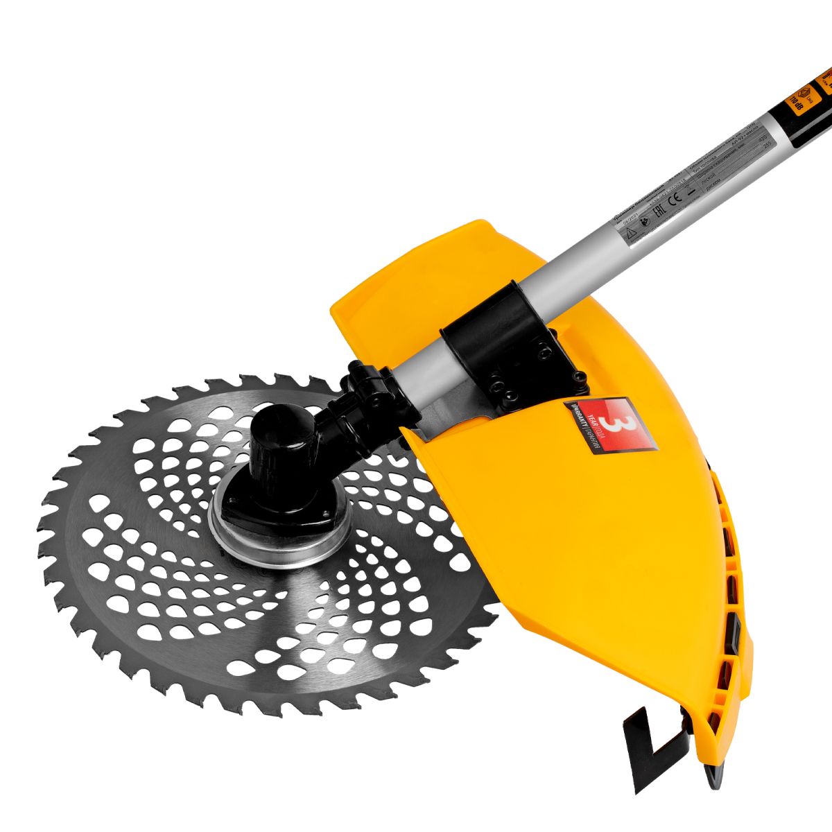 - Безопасность — защитный кожух из прочного PA-пластика исключает отлетание веток и камней на пользователя.