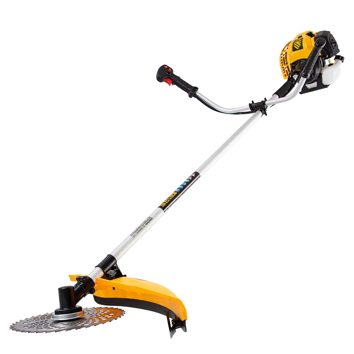Бензиновый триммер Denzel DT-52 96226 оснащен экономичным, надежным и простым в эксплуатации двигателем мощностью 3 л.с. и объемом 52 см³, имеет неразъемную штангу и поставляется комплектом из 2 частей. Оптимален для подравнивания газона, избавления от травы с жесткими древовидными стеблями (полыни, крапивы, лебеды, борщевика), а также срезания кустарника и молодых побегов деревьев со стволами диаметром до 10 мм. Эффективно скашивает траву в труднодоступных местах: вдоль кромок дорожек, стен строений и вокруг деревьев. В комплекте катушка с леской и пильный диск, ширина скашивания составляет 420 мм и 255 мм соответственно.
