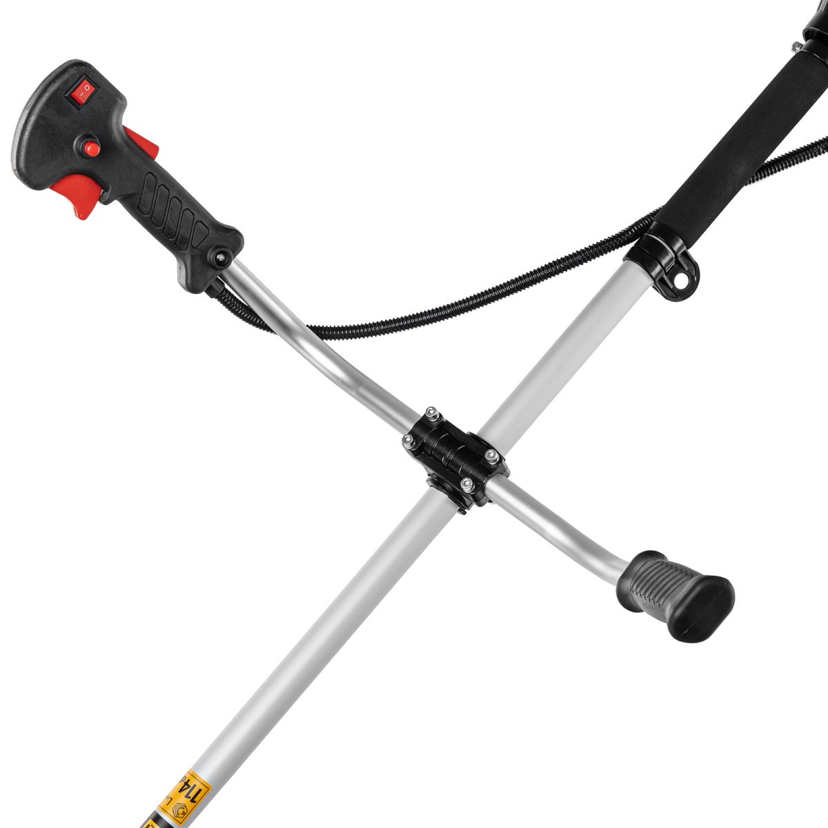 - Защита от случайного пуска — блокиратор курка газа предотвращает включение триммера по неосторожности, обеспечивая безопасность пользователя.