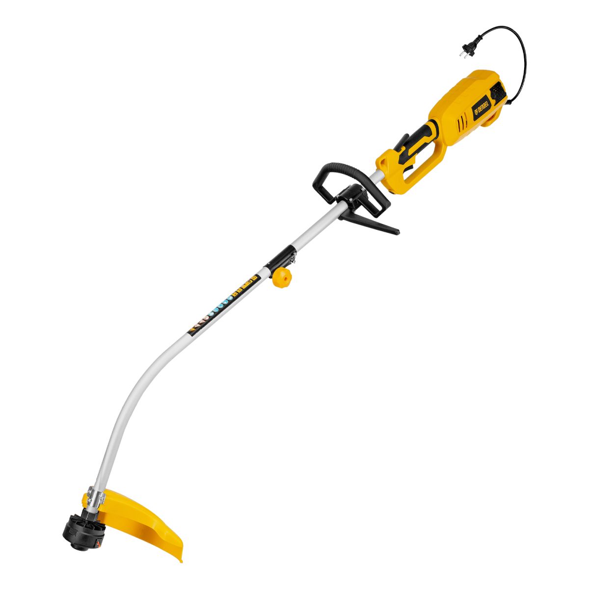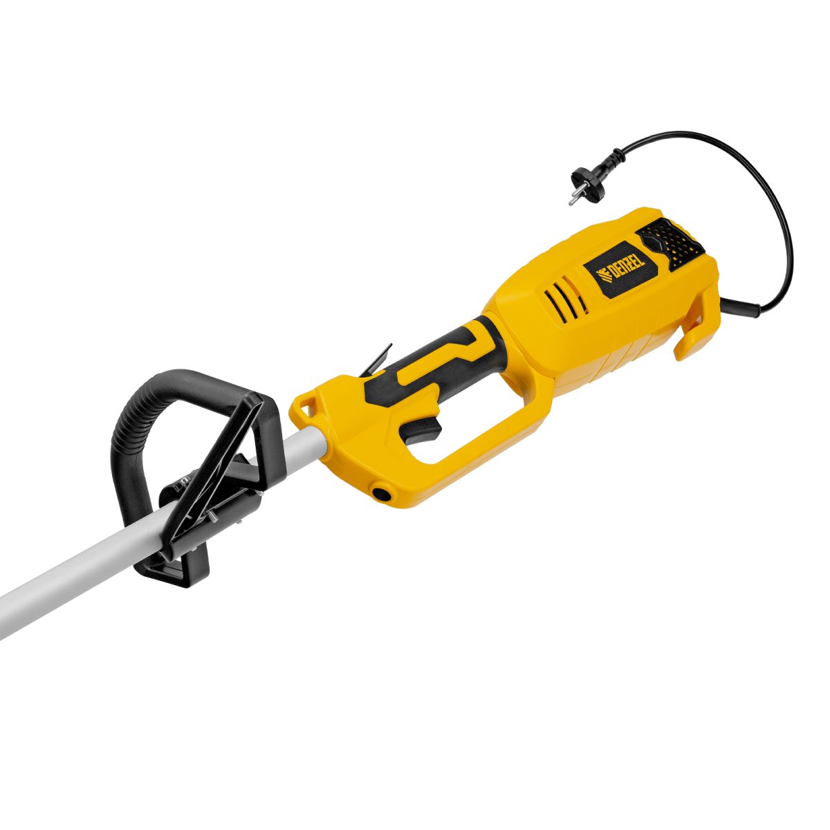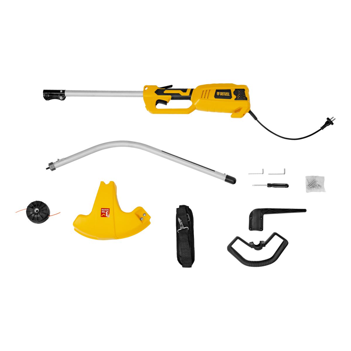 Электрический триммер Denzel TE-1100 96641 мощностью 1100 Вт, с разборной штангой и катушкой, предназначен для скашивания травы на дачном участке. Ширина прохода составляет 380 мм, что удобно для работы на небольших участках. Мощный двигатель обеспечивает вращение катушки со скоростью 6500 об/мин. Электродвигатель не требует приготовления топливной смеси и сложного технического обслуживания. Благодаря отсутствию вредных выбросов и неприятного запаха работа триммера для газона не вредит здоровью и не вызывает дискомфорт.,На триммер можно установить диск Denzel 96323 (приобретается отдельно) для быстрого удаления растительности с жесткими стеблями (полыни, крапивы, лебеды).