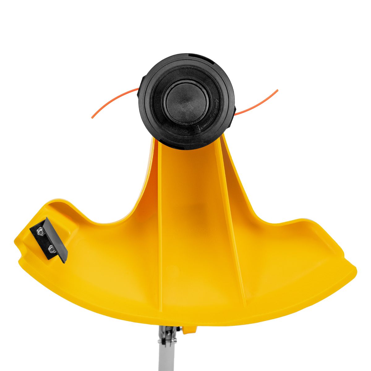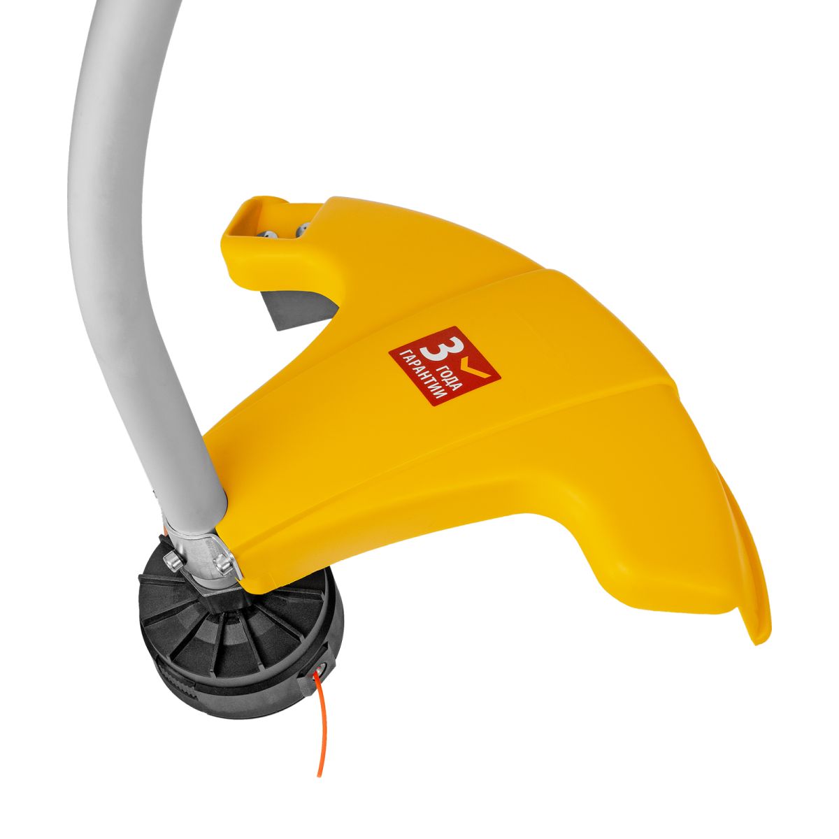 - Безопасность — блокировка выключателя препятствует случайному запуску, а защитный кожух предохраняет от летящей травы.