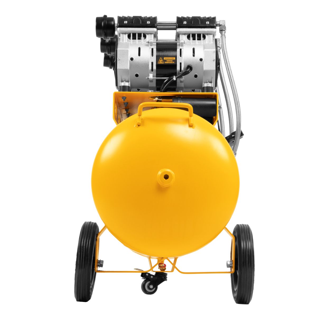 - Мобильность — компрессор оборудован ручкой и 3 колесами (из них 1 поворотное) для удобного разворота и перемещения.