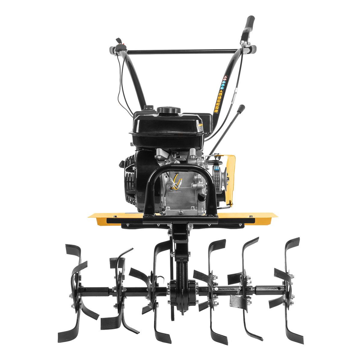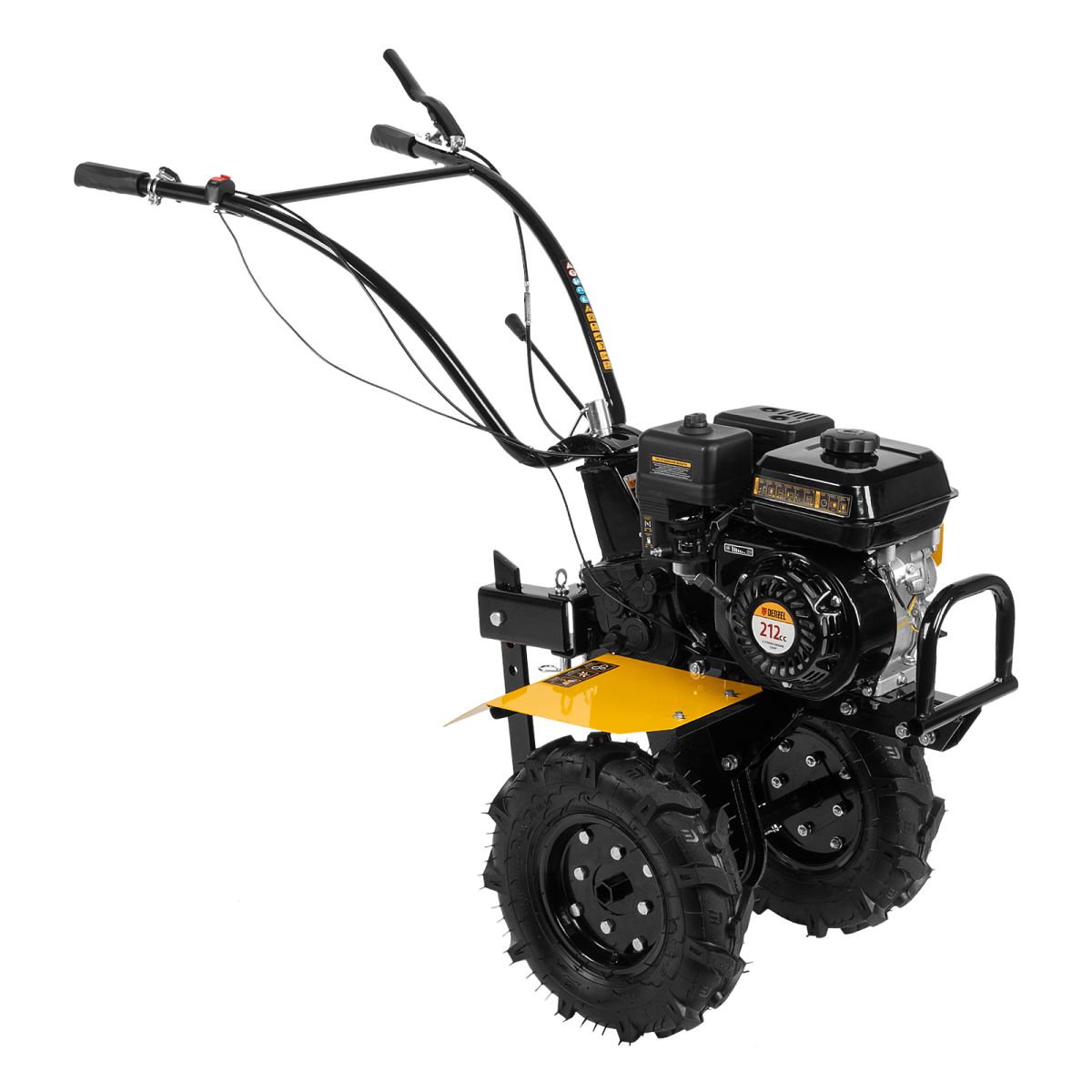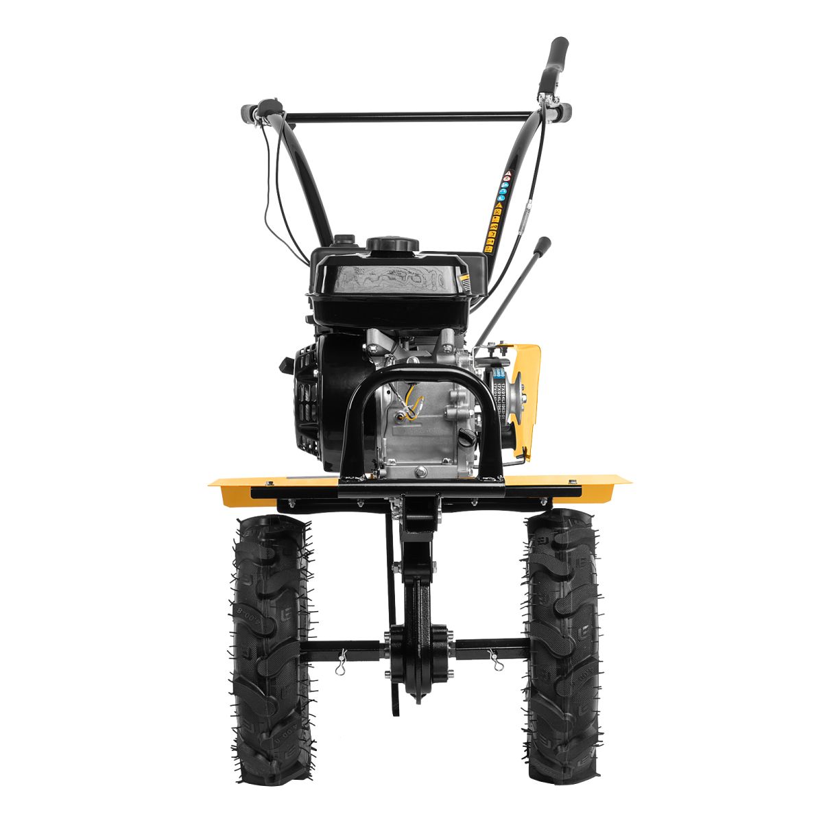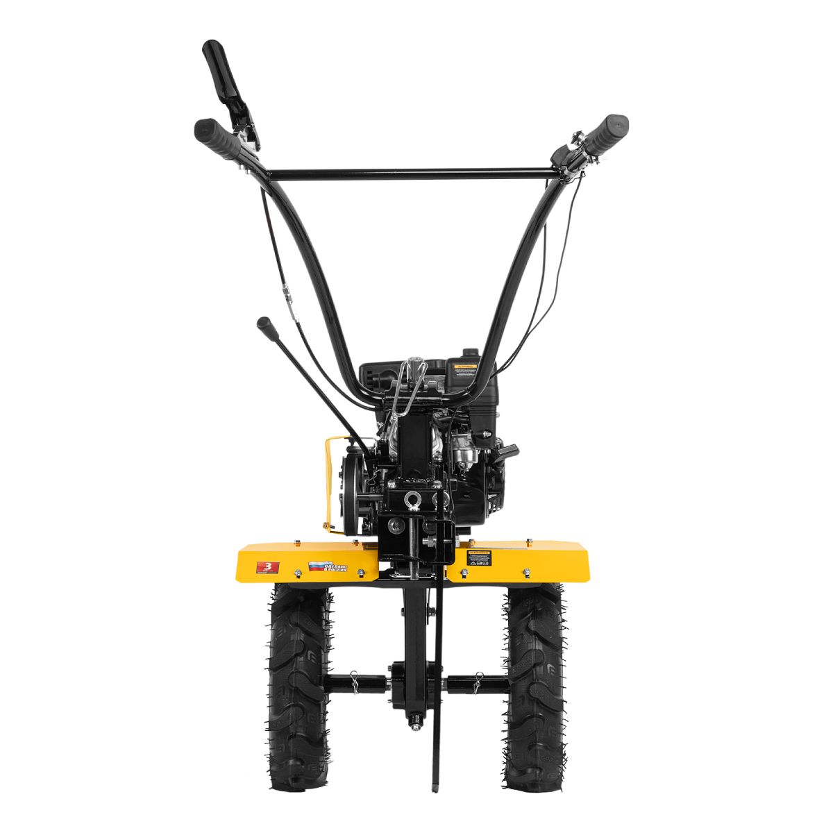 - Комфортная транспортировка — усиленная рукоятка-бампер упрощает перемещение мотоблока по участку.