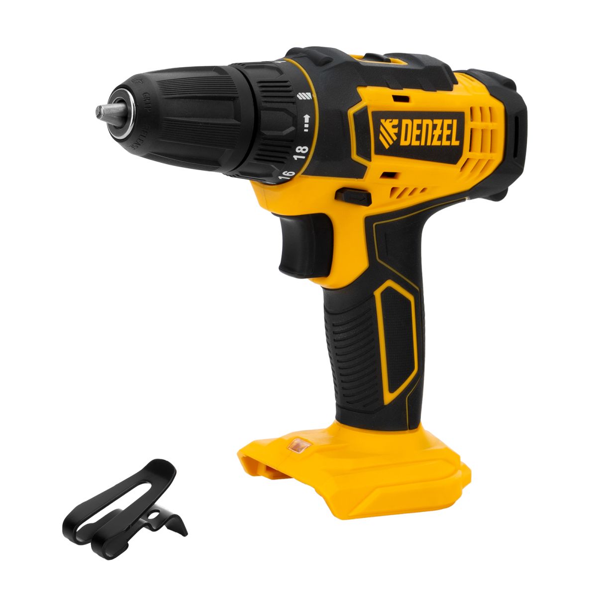 - Универсальность — дрель-шуруповерт совместима с любым Li-Ion аккумулятором единой платформы Denzel Battery System 18V.