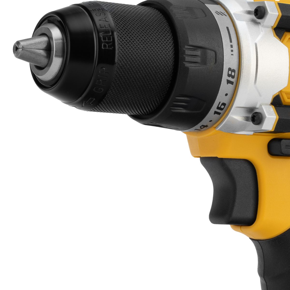 - Настройка крутящего момента — 18+1 ступень регулировки позволяет выбрать оптимальный режим в зависимости от типа крепежа и плотности материала.
