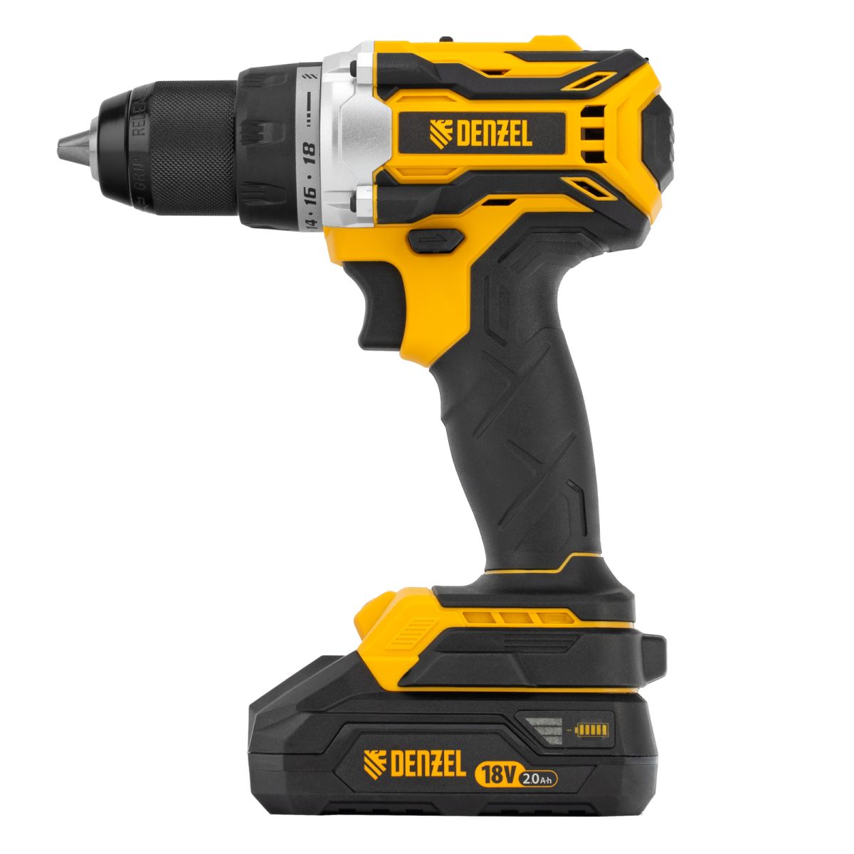 - Универсальность — аккумуляторы совместимы со всеми инструментами модельного ряда единой платформы Denzel Battery System 18V.