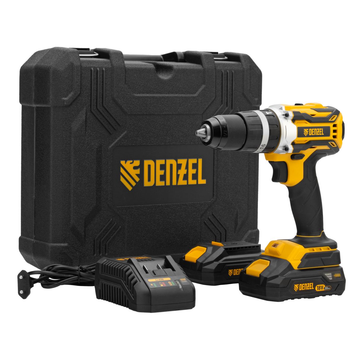 - Универсальность — аккумуляторы совместимы со всеми инструментами модельного ряда единой платформы Denzel Battery System 18V.