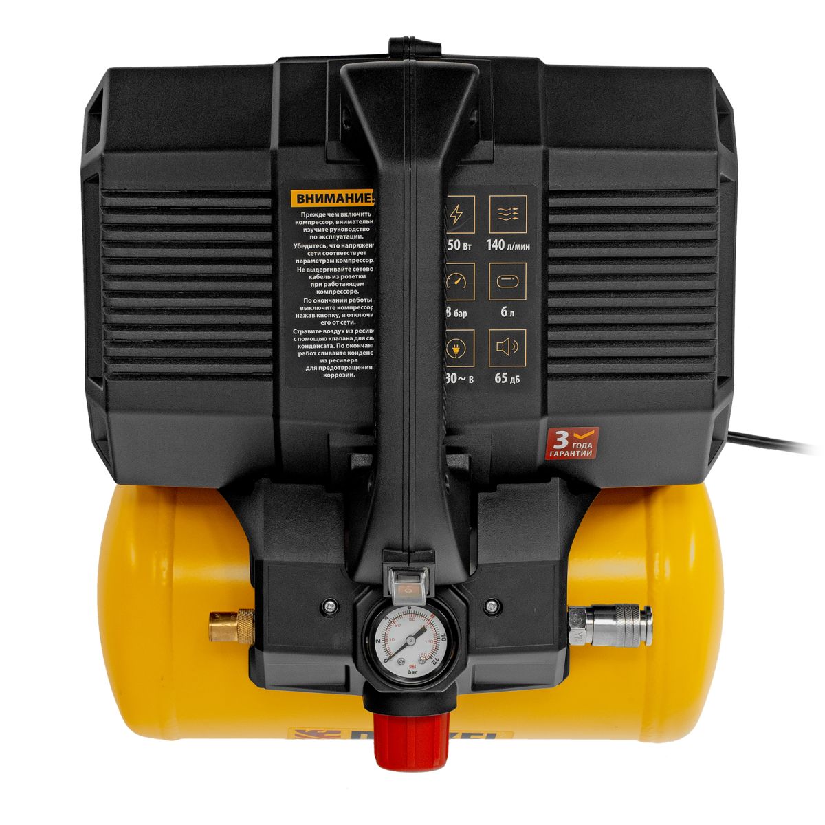 Компрессор безмасляный малошумный Denzel DLS750/6 58019 мощностью 750 Вт, с ресивером объемом 6 л, имеет производительность на входе 140 л/мин и предназначен для обеспечения пневмоинструмента сжатым воздухом. Оптимален для работы с краскораспылителем и продувочным пистолетом, т.к. воздух на выходе не содержит частиц масла. Рабочий узел закрыт сплошным кожухом, благодаря чему уровень шума во время работы не превышает 65 дБ. Компрессор можно использовать в жилом помещении и на дачном участке.