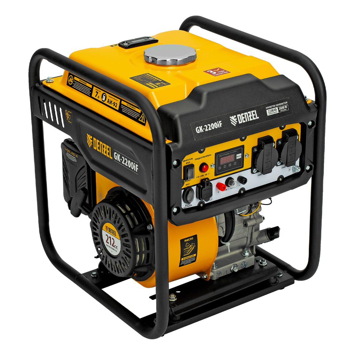 Инверторный генератор Denzel GK-2200iF 94707 максимальной мощностью 2,2 кВт, с ручным стартом, поддерживает напряжение 230 В и предназначен для питания осветительных приборов, бытовой техники, электроинструмента и т.д. в условиях отсутствия электросети или перебоев в ее работе. Обеспечивает подачу стабильного тока, подходит для подключения потребителей, чувствительных к качеству электроэнергии: газовых котлов, серверных станций, цифровой техники. Предусмотрена возможность подключения мобильных устройств к выходу USB 5 В. Клеммы постоянного тока 12 В можно использовать для зарядки автомобильных аккумуляторов. Генератор незаменим на дачном участке.