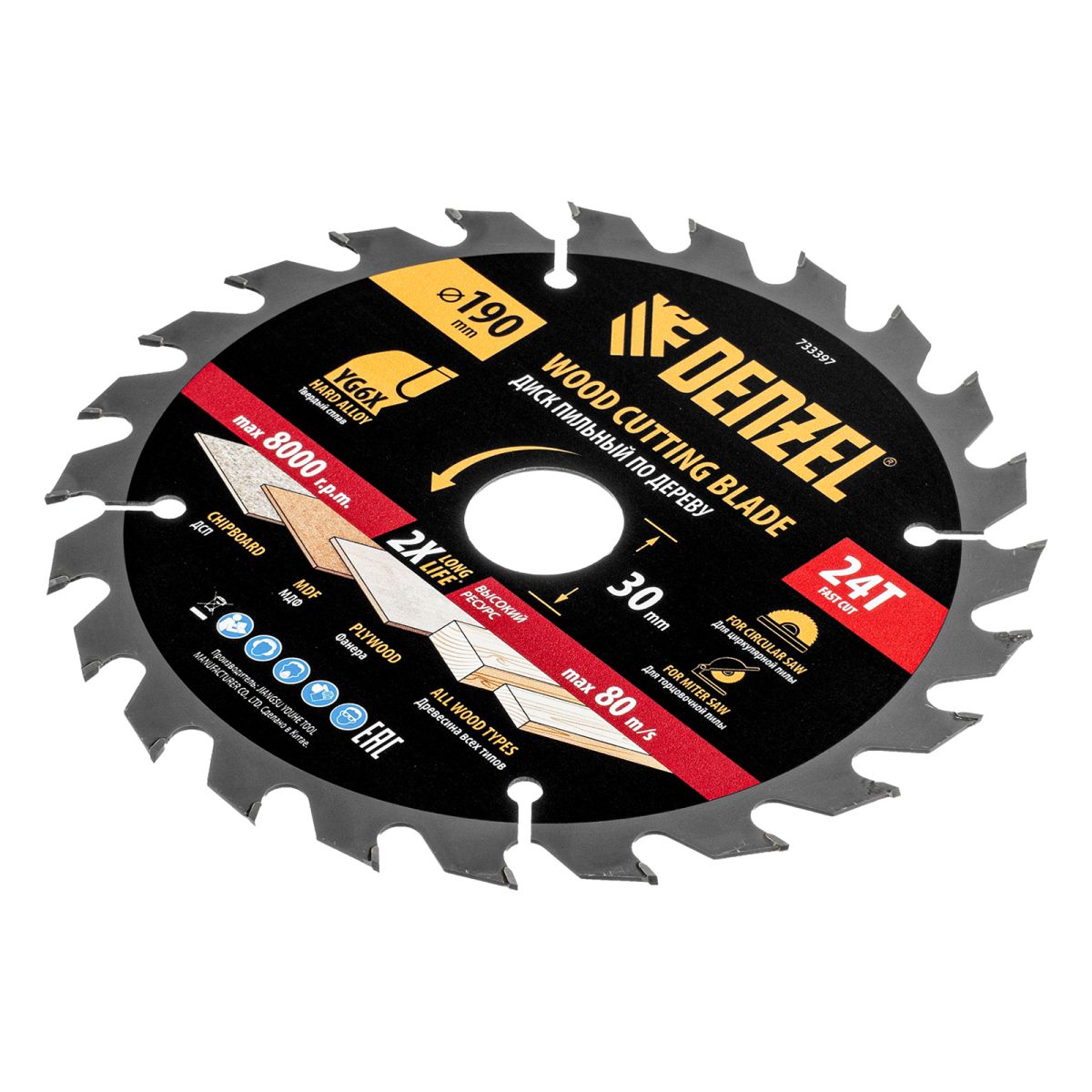 Пильный диск Denzel 733397 диаметром 190 x 30 мм, с 24 зубьями, предназначен для продольного и поперечного распила твердой и мягкой древесины, фанеры, МДФ, ДСП. 24 зуба типа ATB с режущими пластинами оптимальной геометрии обеспечивают быстрый рез. Режущие пластины из твердого сплава YG6X сохраняют рабочие свойства при интенсивном использовании. Диск устанавливается на циркулярную, торцовочную пилу или на распиловочный станок. В комплект поставки входит переходное кольцо с 30 на 20 мм, что позволяет изменить посадочный размер и расширяет возможности использования диска.