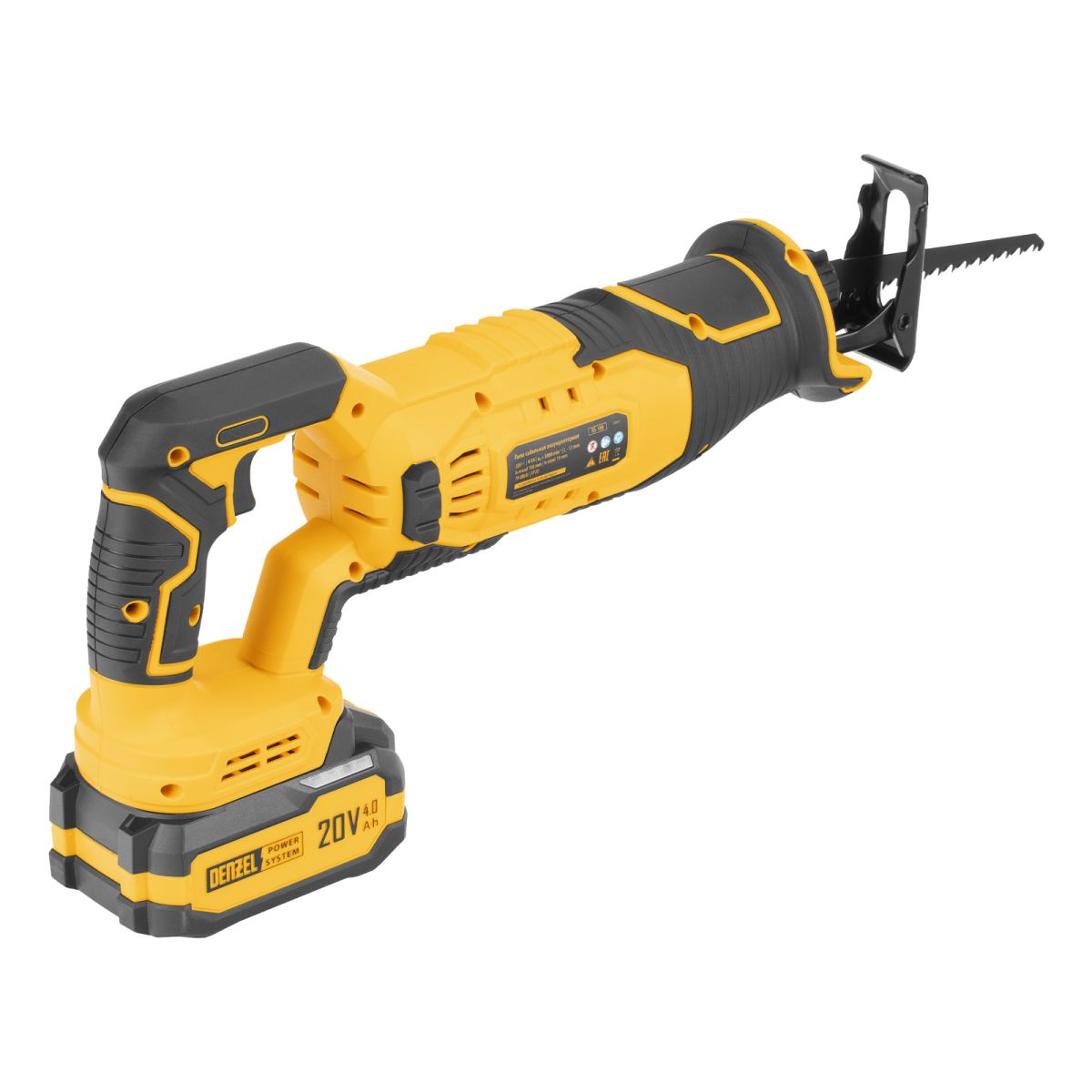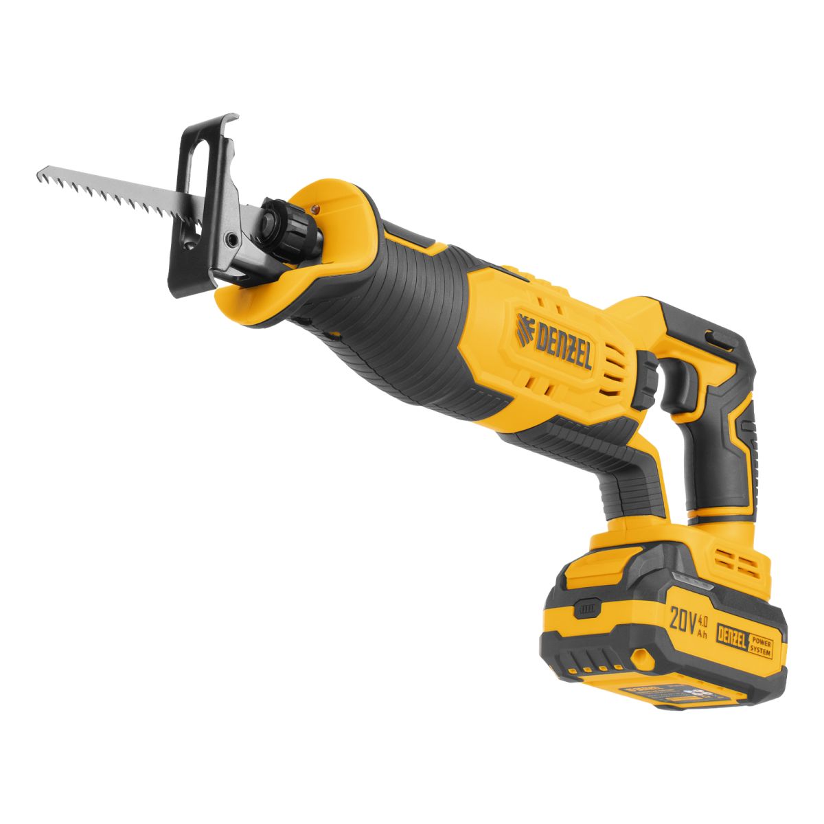 Пила сабельная аккумуляторная - 1 штЛезвие сабельной пилы - 1 штАккумуляторная батарея Denzel Power System - 1 штЗарядное устройство - 1 штПолотно пильное по дереву - 1 штПолотно пильное по металлу - 1 штРуководство по эксплуатации с гарантийным талоном - 1 шт