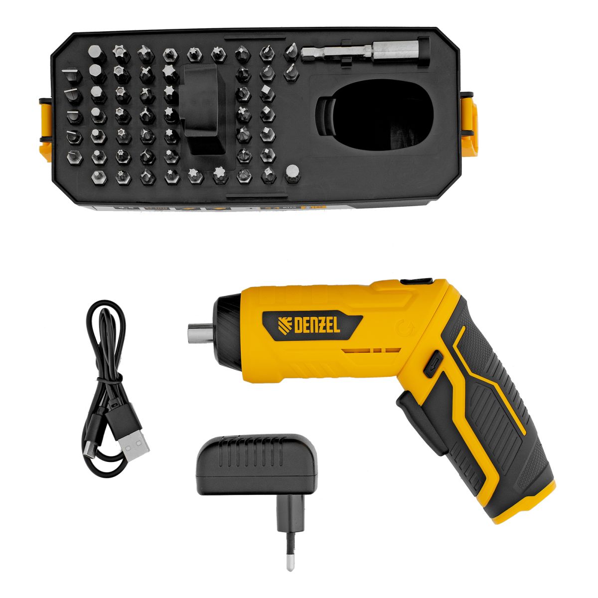 Отвертка аккумуляторная - 1 штУстройство зарядное - 1 штКабель USB-A/USB-C - 1 штАдаптер магнитный - 1 штКейс - 1 штНабор бит 25 мм - 54 штИнструкция по эксплуатации и гарантийный талон - 1 шт
