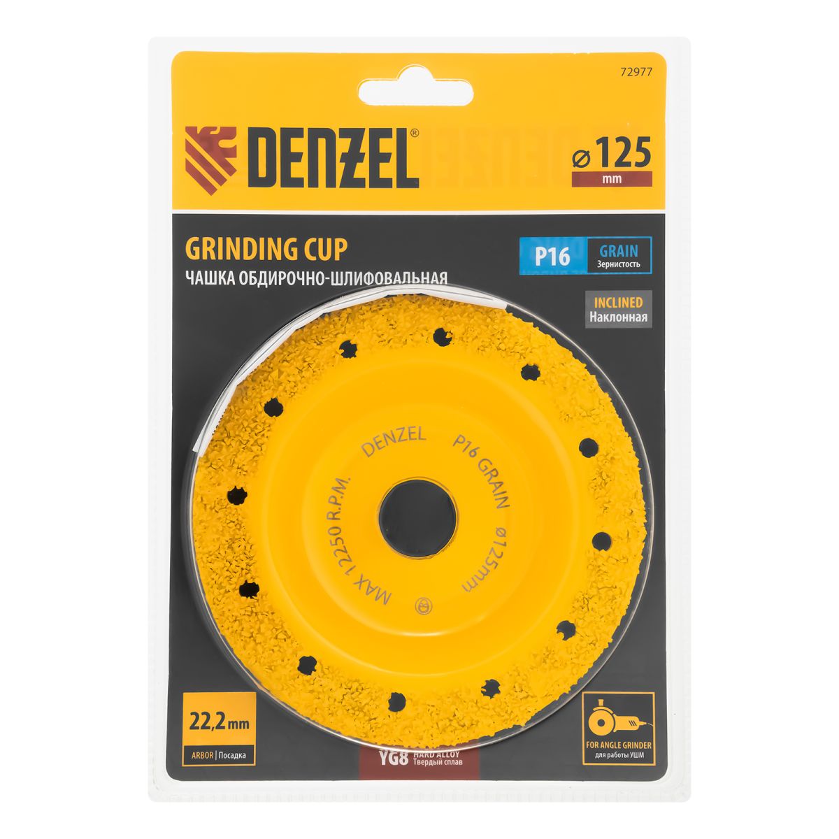 Твердосплавная зачистная чашка Denzel 72977 диаметром 125 мм, со средним зерном P16 и наклонной рабочей частью, устанавливается на углошлифовальную машину (УШМ) и используется для черновой обработки деревянных, пластиковых, резиновых, газобетонных и кирпичных поверхностей. Позволяет устранить неровности, снять слой старой краски, клея, цемента. В ходе зачистных работ не образуется абразивная пыль, что снижает вредное воздействие на здоровье пользователя. Наклонная рабочая часть упрощает обработку деталей сложной формы. Облегченный корпус позволяет избежать излишней нагрузки на УШМ и преждевременного выхода инструмента из строя.