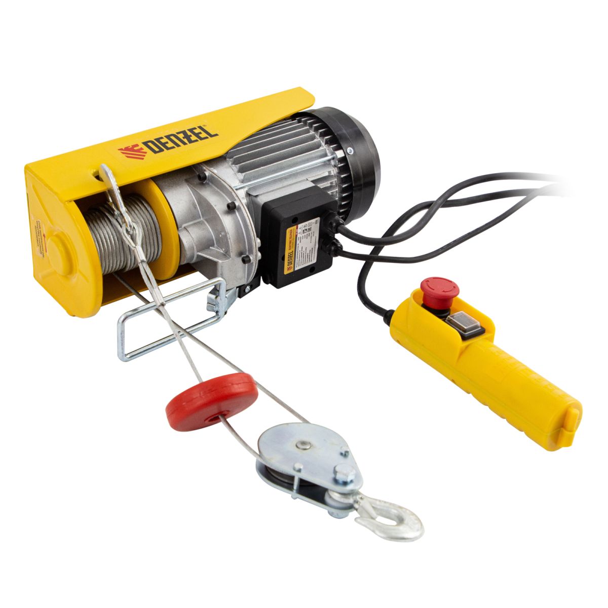 Электрический тельфер Denzel TF-500 52012 мощностью 1020 Вт способен поднимать автомобильные двигатели, строительные материалы и другие грузы массой до 0,25 т напрямую и до 0,5 т с помощью блока полиспаста. Высота подъема составляет 6 м при использовании полиспаста и 12 м без него, скорость — 5 и 10 м/мин соответственно. Устройство пригодится в гараже, автомастерской или на строительной площадке. Полиспаст входит в комплект поставки.