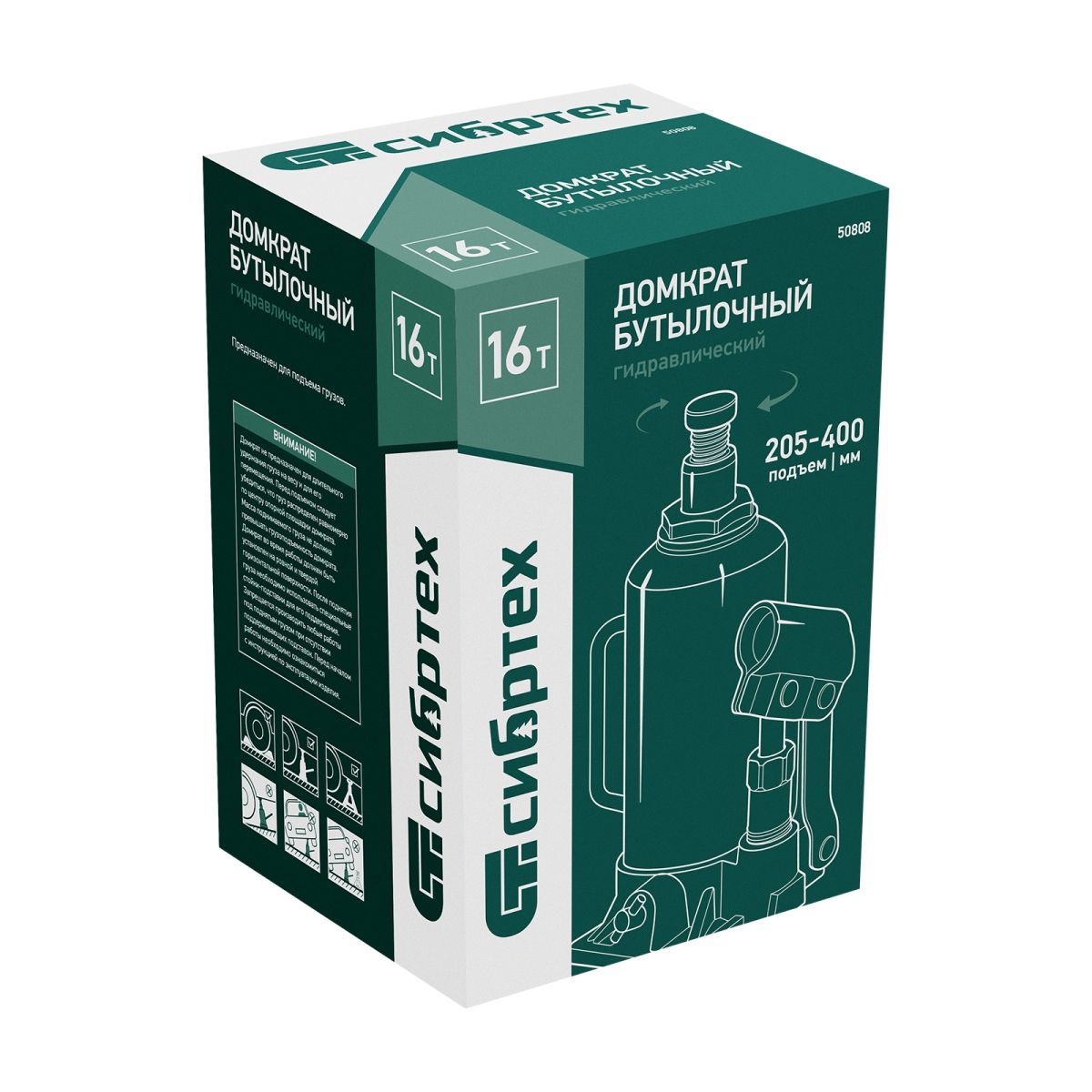 Домкрат гидравлический бутылочный, 16 т, 205-400 мм Сибртех