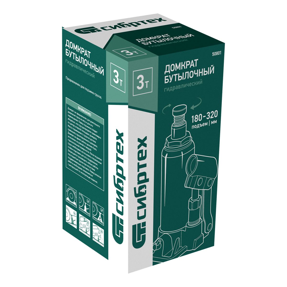 Домкрат гидравлический бутылочный Сибртех 50801 предназначен для подъема грузов массой до 3 т на высоту от 180 до 320 мм. Не требует больших усилий от пользователя и значительно облегчает рабочий процесс. Домкрат будет полезен при проведении техобслуживания машины в автосервисе или гараже.