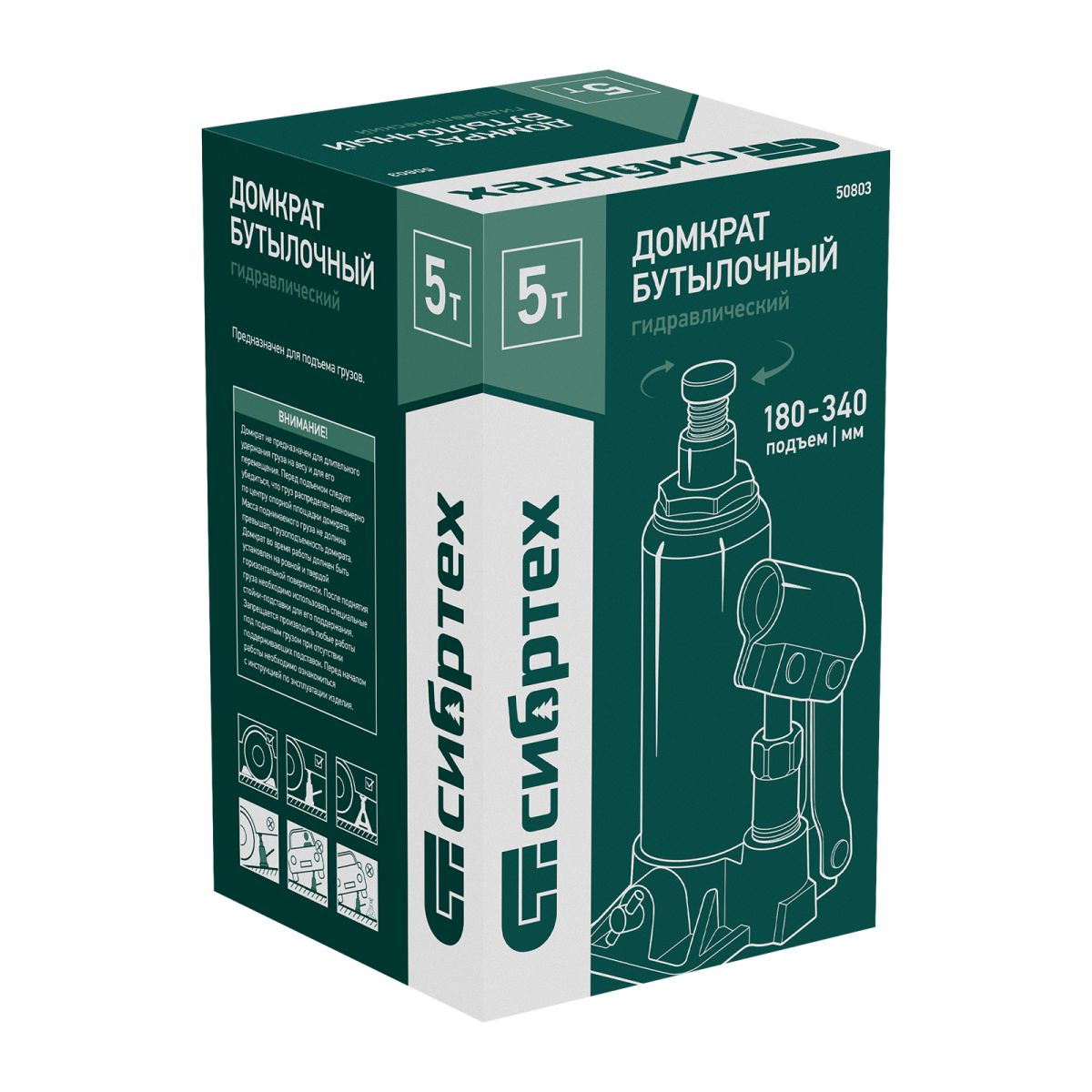Домкрат гидравлический бутылочный, 5 т, 180-340 мм Сибртех