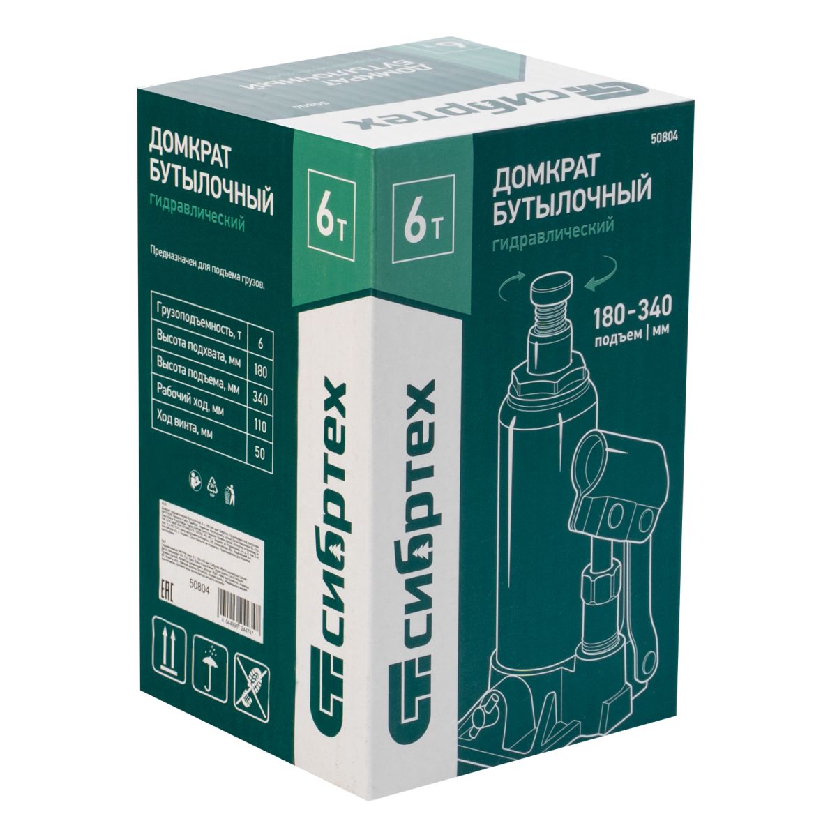 Домкрат гидравлический бутылочный Сибртех 50804 предназначен для подъема грузов массой до 6 т на высоту от 180 до 340 мм. Не требует больших усилий от пользователя и значительно облегчает рабочий процесс. Домкрат будет полезен при проведении техобслуживания машины в автосервисе или гараже.