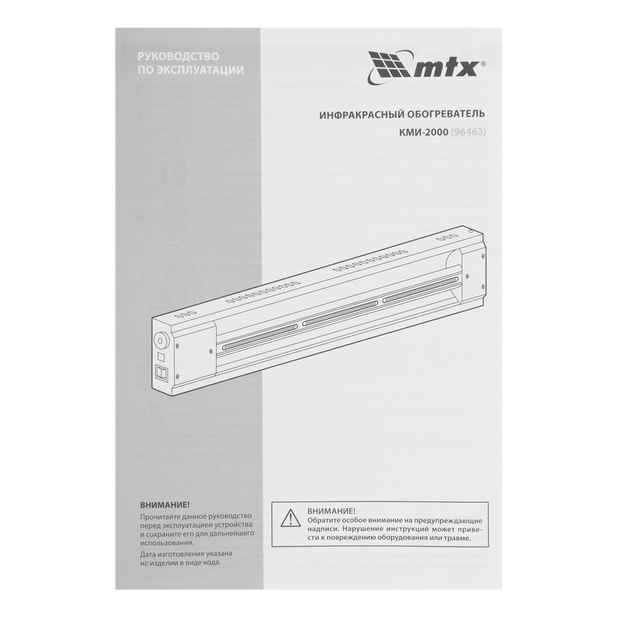 Инфракрасный обогреватель MTX КМИ-2000 96463 с плавной регулировкой мощности в диапазоне 500-2000 Вт работает от сети 230 В и предназначен для обогрева бытовых помещений. Служит основным источником тепла на площади до 20 м² и дополнительным — в помещениях площадью до 40 м². Обеспечивает комфортный микроклимат, поскольку не сушит воздух и не сжигает пыль. Благодаря оптимальной длине волны 5,9 мкм безопасен для здоровья пользователя. Инфракрасные лучи нагревают окружающие поверхности, а не воздух, что позволяет снизить затраты на электроэнергию. Устройство может быть установлено внутри помещений, на крытых верандах, в беседках и теплицах. Сделано в России.