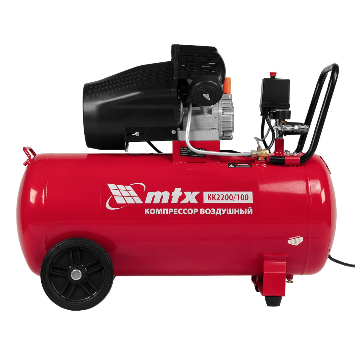 Масляный воздушный компрессор MTX KK-2200/100 58033 мощностью 2,2 кВт, с прямым приводом, оснащен ресивером объемом 100 л, рассчитан на давление до 8 бар и обеспечивает производительность на уровне 350 л/мин. Предназначен для обеспечения работоспособности пневматического инструмента: гайковерта, шлифовальной машины, шуруповерта, краскораспылителя и т.д. Мощный и производительный компрессор будет полезен на строительной площадке, в гараже, на предприятии автосервиса.