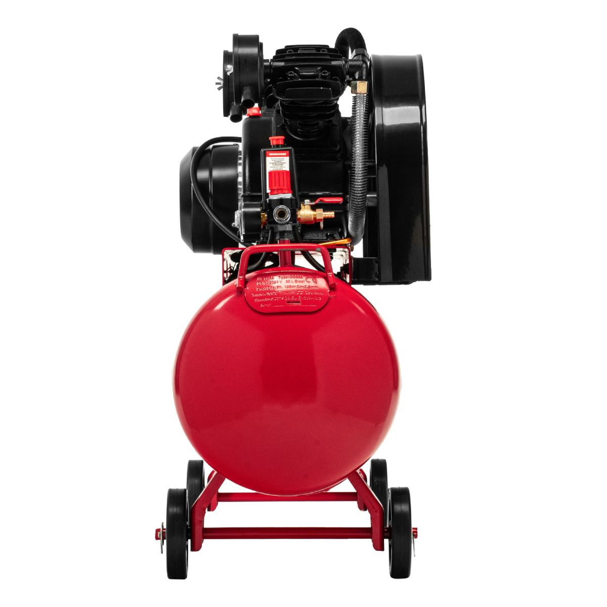 - Автоматическая регулировка производительности — прессостат останавливает двигатель при достижении максимального рабочего давления (8 бар) и запускает его при падении давления ниже минимально допустимого уровня.