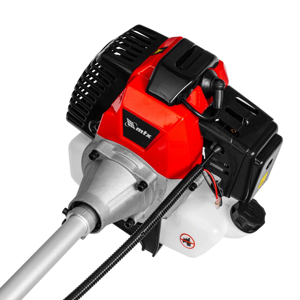 Бензиновый триммер MTX MT-52S 962365 с разъемной штангой и двигателем объемом 52 см3 предназначен для стрижки и скашивания травы, формирования границ газонов. Удобен для обработки участков вдоль стен и оград, вокруг деревьев. В качестве режущих элементов используются катушка с леской диаметром 3 мм и трехлопастный нож, благодаря которым триммером можно скашивать даже густую траву и сорняки с толстыми стеблями. Ширина скашивания леской составляет 420 мм, ножом — 255 мм, что позволяет эффективно справляться с работой. Триммер незаменим для ухода за дачным участком.