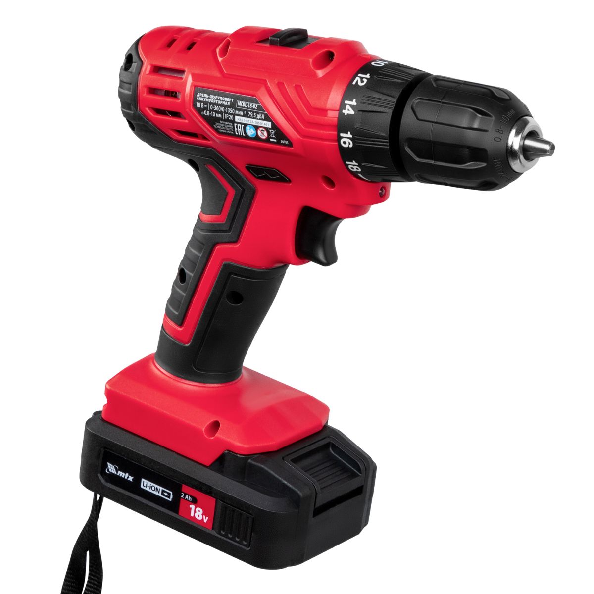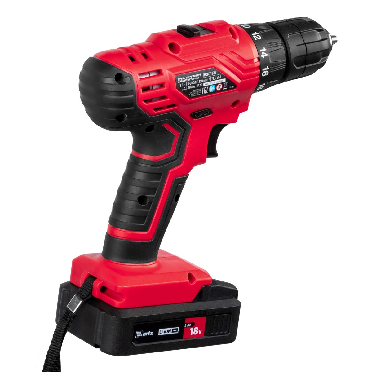 Аккумуляторная дрель-шуруповерт MTX MCDL-18-02 26185 работает от аккумуляторной батареи Li-Ion 18 В емкостью 2 А·ч и развивает крутящий момент до 30 Н·м. Предназначена для закручивания и откручивания резьбового крепежа, а также сверления отверстий в металле (диаметром до 6 мм), древесине (до 20 мм), пластмассе и других материалах. В комплекте с инструментом идут сразу два аккумулятора, что позволит избежать перерывов в работе
