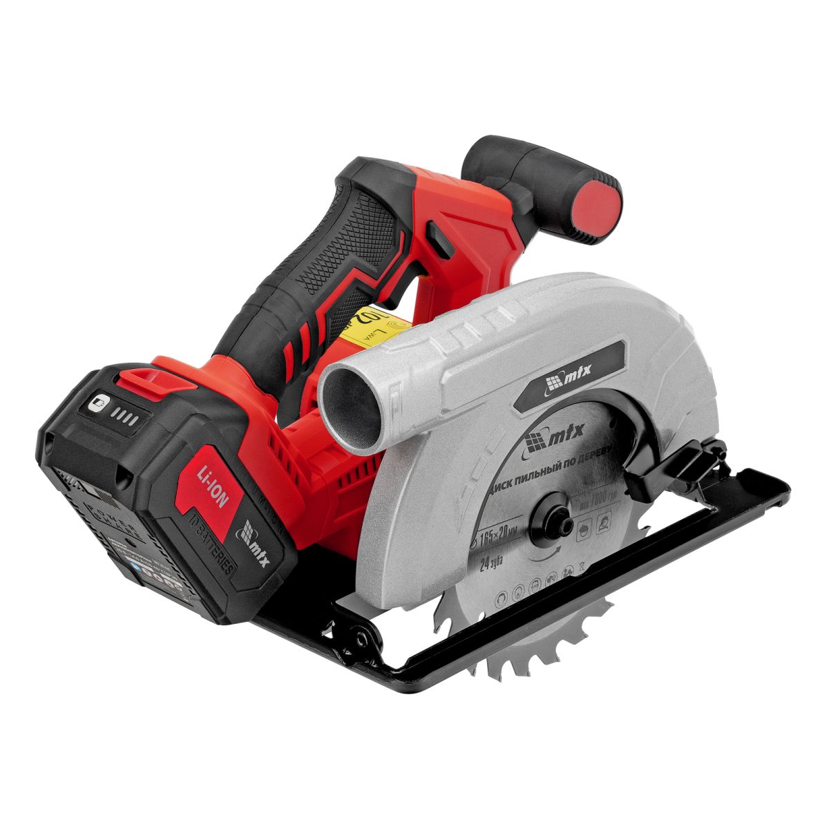 Аккумуляторная циркулярная пила MTX CCSU-20-165 27480 работает от аккумулятора Li-Ion 20 В и совместима с пильными дисками диаметром 165 мм. Предназначена для выполнения продольных и поперечных резов в древесине. При использовании специальной оснастки возможен распил заготовок из алюминия. Двигатель поддерживает частоту вращения шпинделя 4500 об/мин, что обеспечивает высокую производительность. Глубина пропила регулируется в зависимости от толщины обрабатываемой детали и достигает 55 мм под углом 90° и 36 мм под углом 45°. Аккумулятор Li-Ion емкостью 4 А·ч обеспечивает стабильную работу в течение длительного времени.