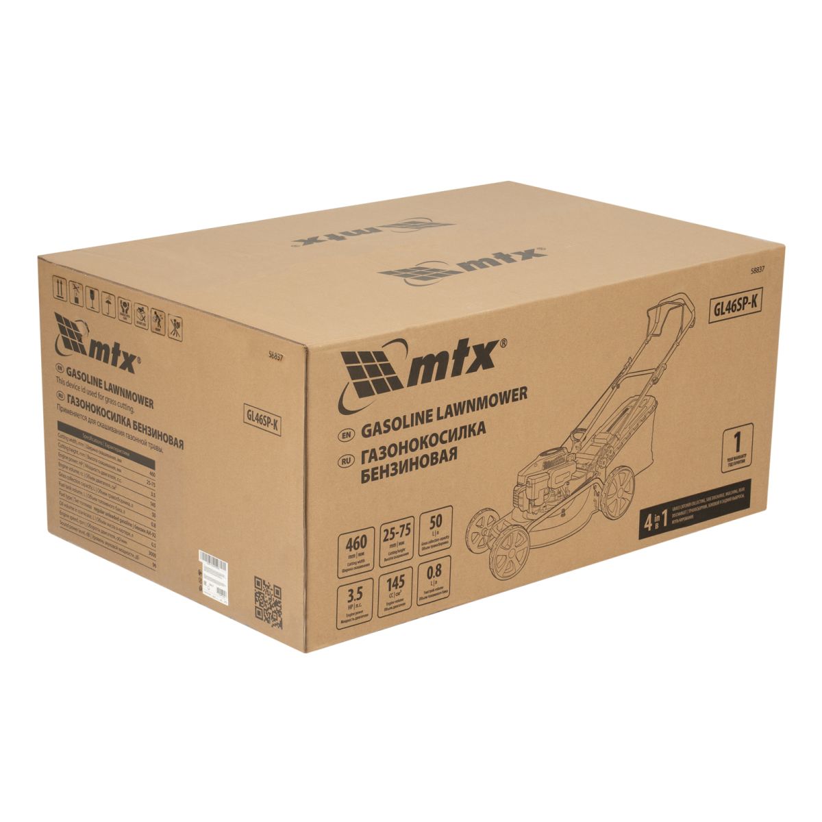 Бензиновая газонокосилка MTX GL46SP-K 58837 с двигателем объемом 145 см³, приводом на колеса и травосборником объемом 50 л обеспечивает ширину скашивания 46 см. Предназначена для кошения травы на газонах и лужайках, оптимальна для ухода за приусадебным участком небольшой площади. Высота скашивания регулируется в диапазоне 25-75 мм (предусмотрено 7 уровней) — можно привести в порядок спортивную площадку, лужайку для отдыха и т.д. Четырехтактный двигатель мощностью 3,5 л.с. позволяет эффективно решать поставленные задачи.