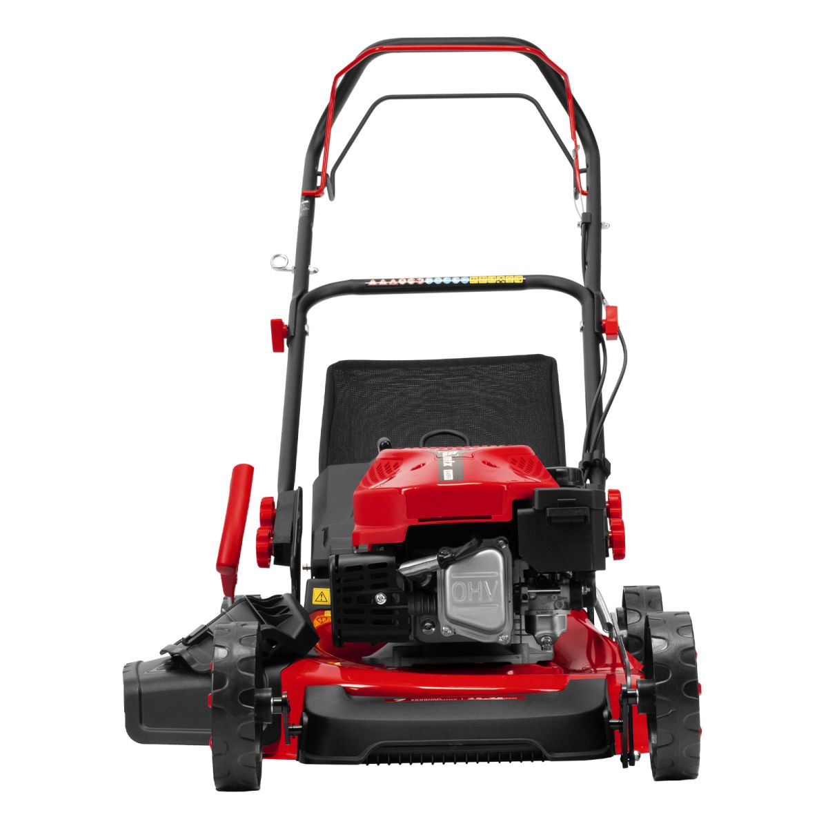 - Простая регулировка высоты скашивания — достаточно изменить положение рычага, переставлять колеса не требуется.