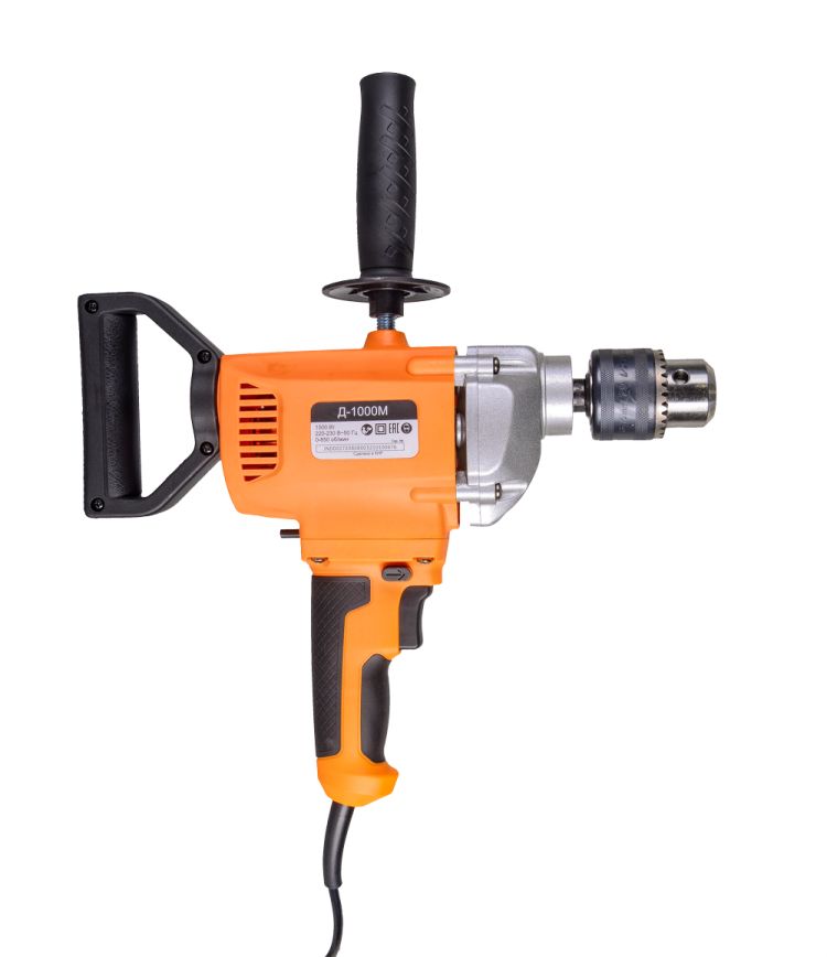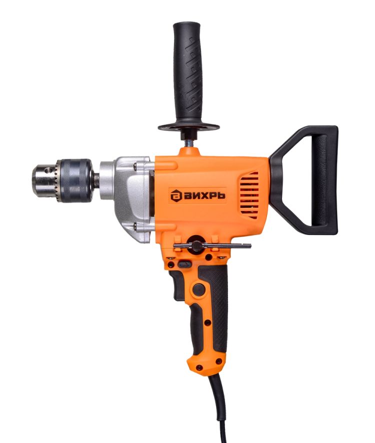 Дрель-миксер Д-1000М Вихрь - электрический инструмент двойного назначения, предназначенный для сверления отверстий в различных конструкционных материалах (дерево, сталь, кирпич, легкий бетон и т. д) (при установке соответствующих сверл), и перемешивание лакокрасочных материалов (при установке соответствующей насадки). Данное устройство сможет одновременно заменить два электроинструмента, что положительно скажется на бюджете покупателя.