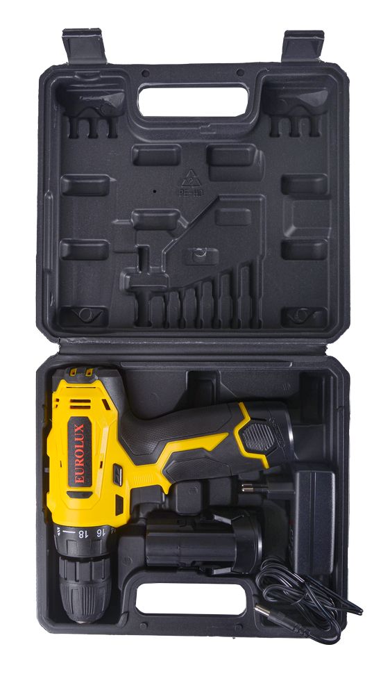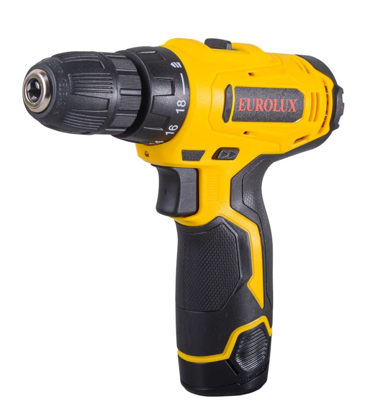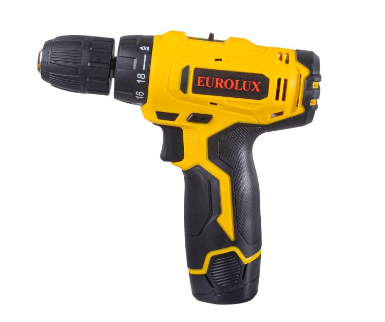 Аккумуляторная дрель-шуруповерт Eurolux ДА-12/2Li – ручной электроинструмент с регулируемым крутящим моментом, предназначенный для закручивания и откручивания шурупов, саморезов, винтов и других видов крепежных изделий, а также сверления отверстий в различных конструкционных материалах.