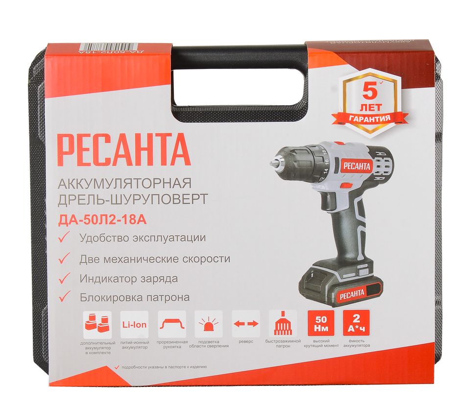 Дрель-шуруповерт аккумуляторная Ресанта ДА-50Л2-18А