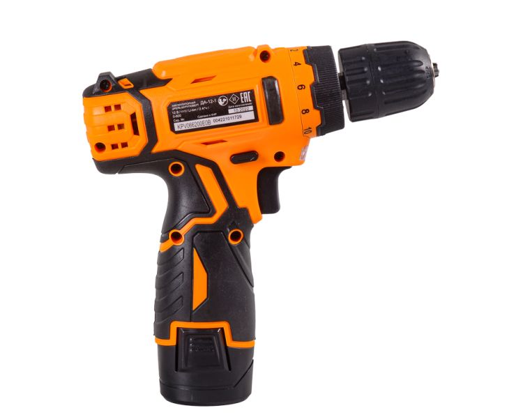 Электроинструмент является аналогом модели ДА-12-2, отличие: количество скоростей 1. Прорезиненная рукоятка обеспечивает удобное и надёжное удержание инструмента в руке во время работы. Быстрозажимной патрон облегчает замену рабочей оснастки. Односкоростной редуктор для удобства ведения различных работ. Реверсивный механизм предназначен для быстрого изъятия сверла из материала в случае застревания, выкручивания или ослабления крепежа. С помощью регулировки частоты вращения инструмент можно настроить под необходимую толщину материала. Модель работает от надёжного никель-кадмиевого аккумулятора (NiCd).