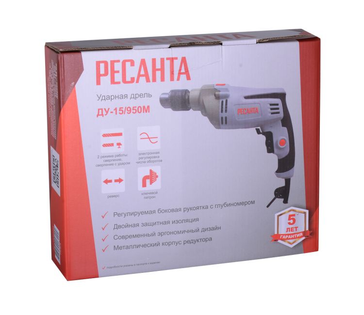Ударная дрель Ресанта ДУ-15/950М 75/8/4 – универсальный инструмент для сверления и монтажа