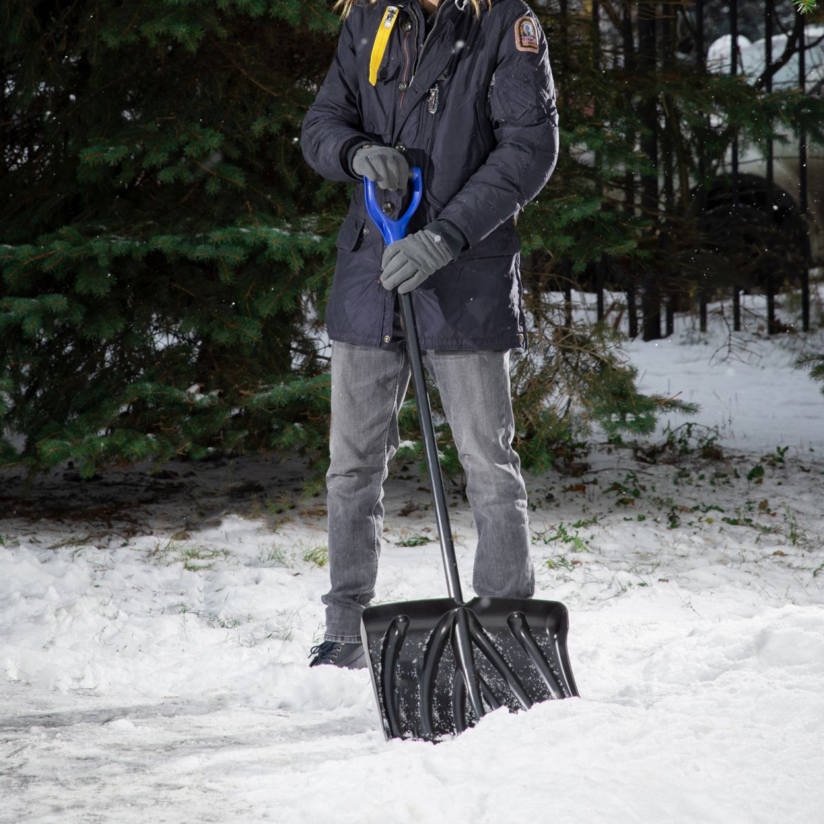 Пластиковая лопата Palisad 61491 размером 460 х 335 х 1300 мм, с металлопластиковым черенком, позволяет облегчить уборку снега. С ее помощью можно очистить дорожки в загородном доме, выезд из гаража и т.д. С лопатой весом 1,53 кг можно долго работать без усталости. А за счет длины 1300 мм с ней комфортно работать, т.к. снижается нагрузка на спину.