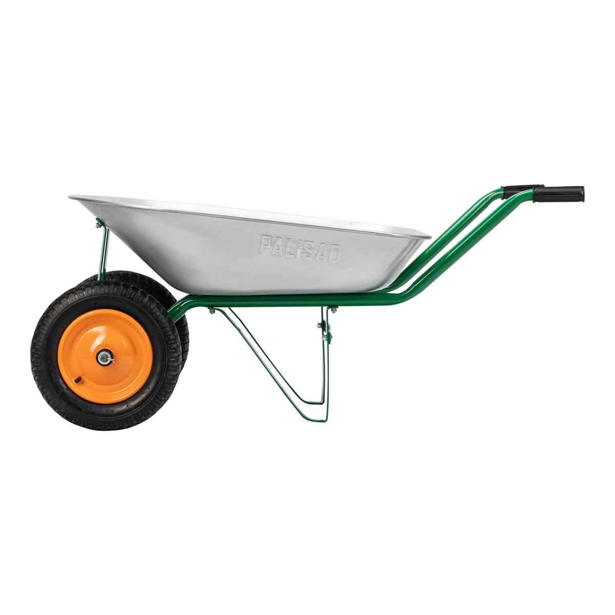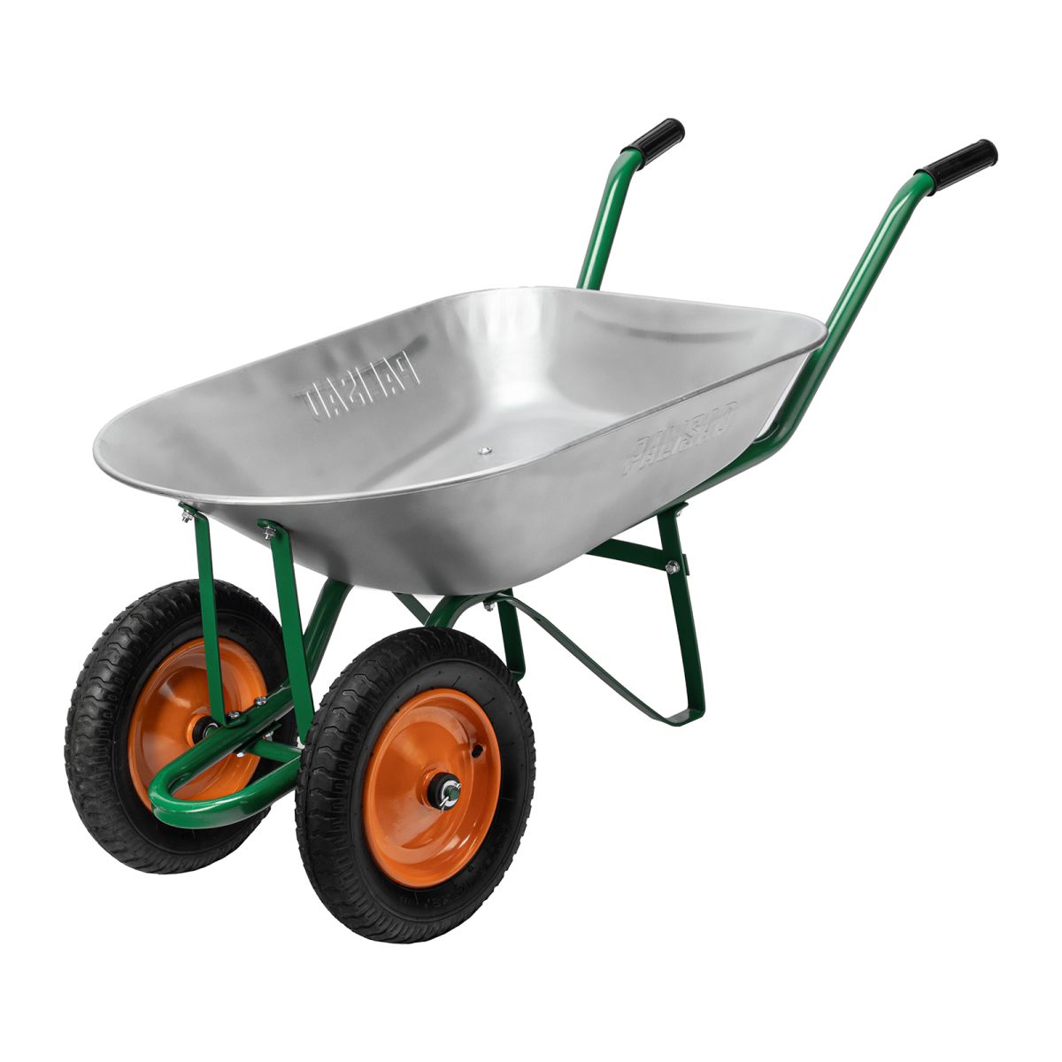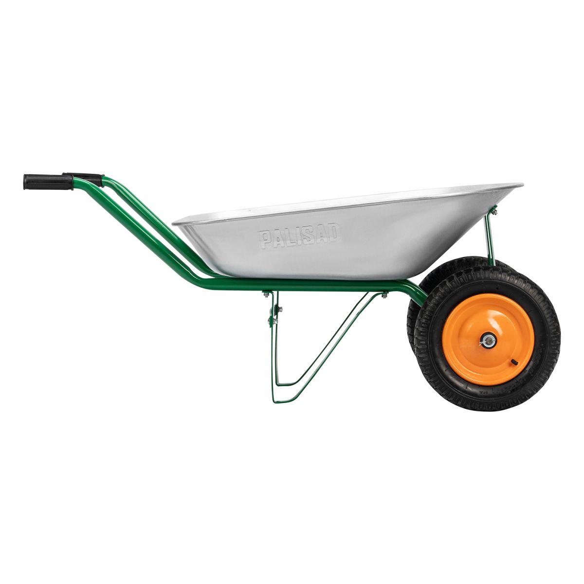 Садовая тачка Palisad 689223 с двумя колесами, грузоподъемностью 170 кг и с кузовом объемом 78 л, рассчитана на транспортировку садовых и легких строительных грузов. Избавляет от необходимости ручного перемещения тяжестей и позволяет снизить нагрузку на спину.