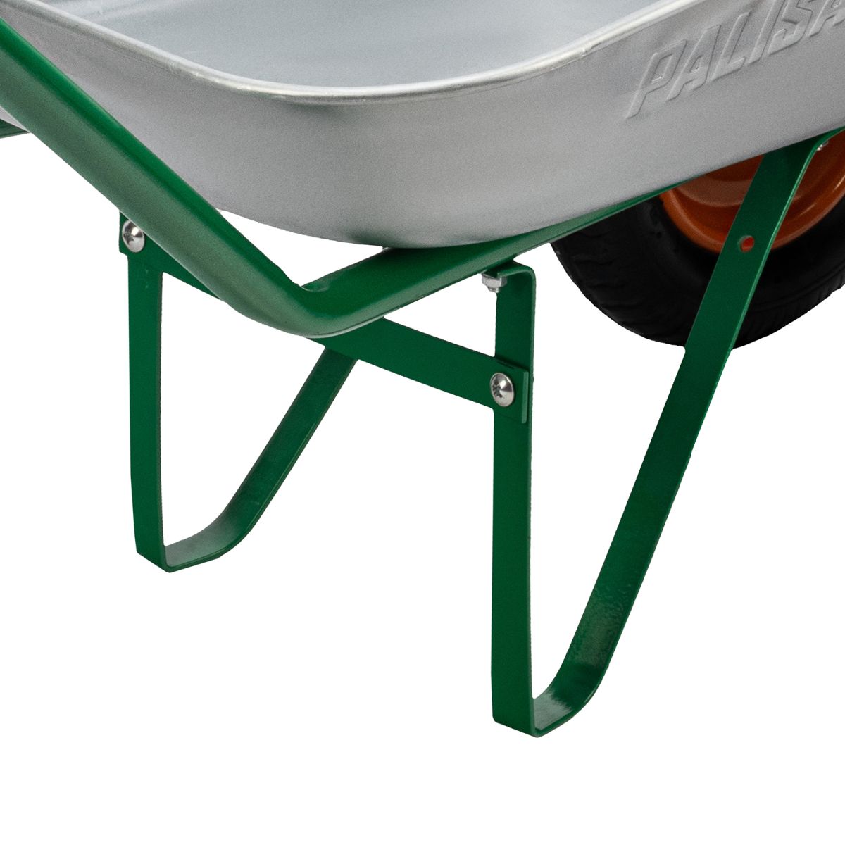 - Удобная фронтальная разгрузка — у тачки имеется дополнительный передний упор.