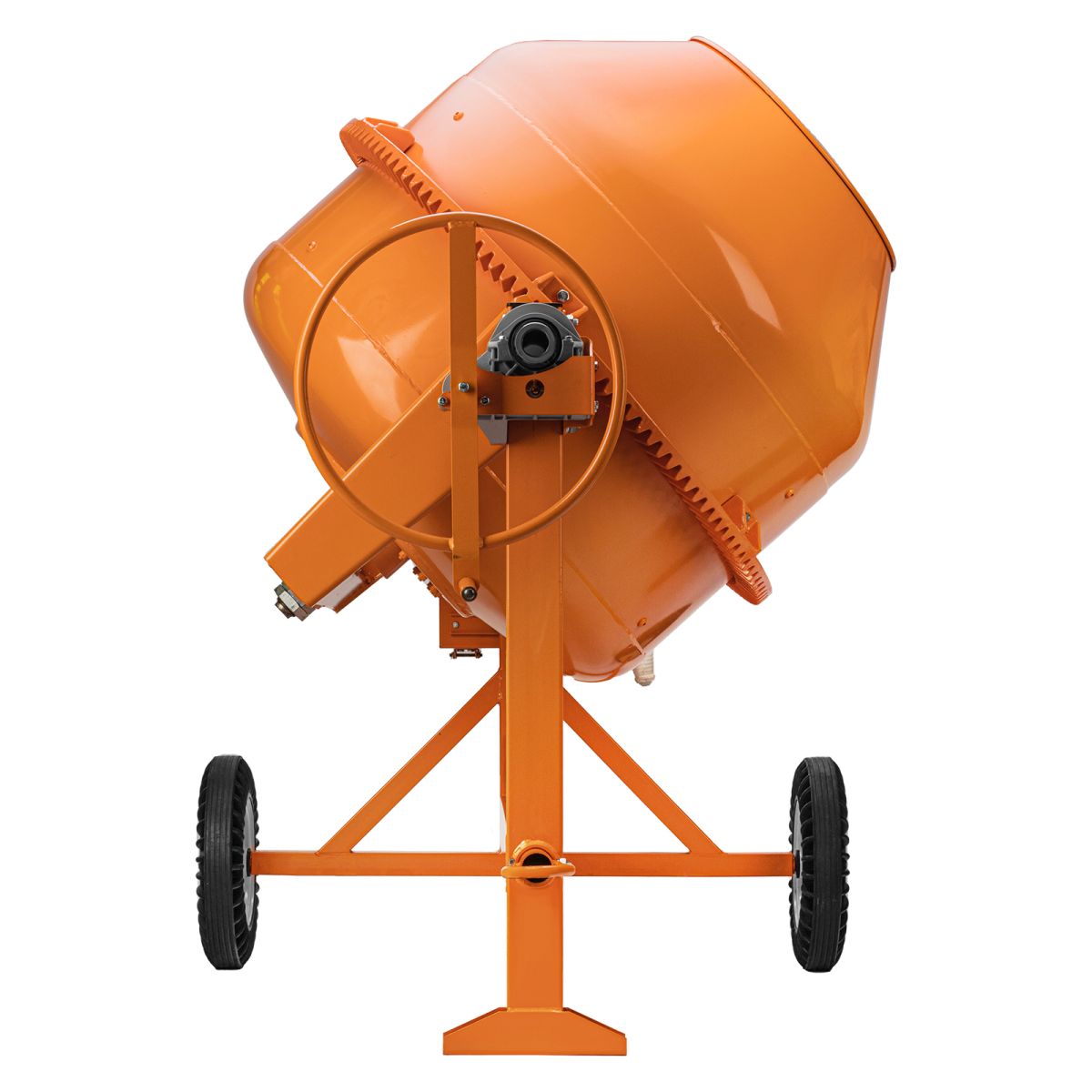 - Устойчивость — металлическая ножка с упором не дает бетоносмесителю опрокинуться во время работы.