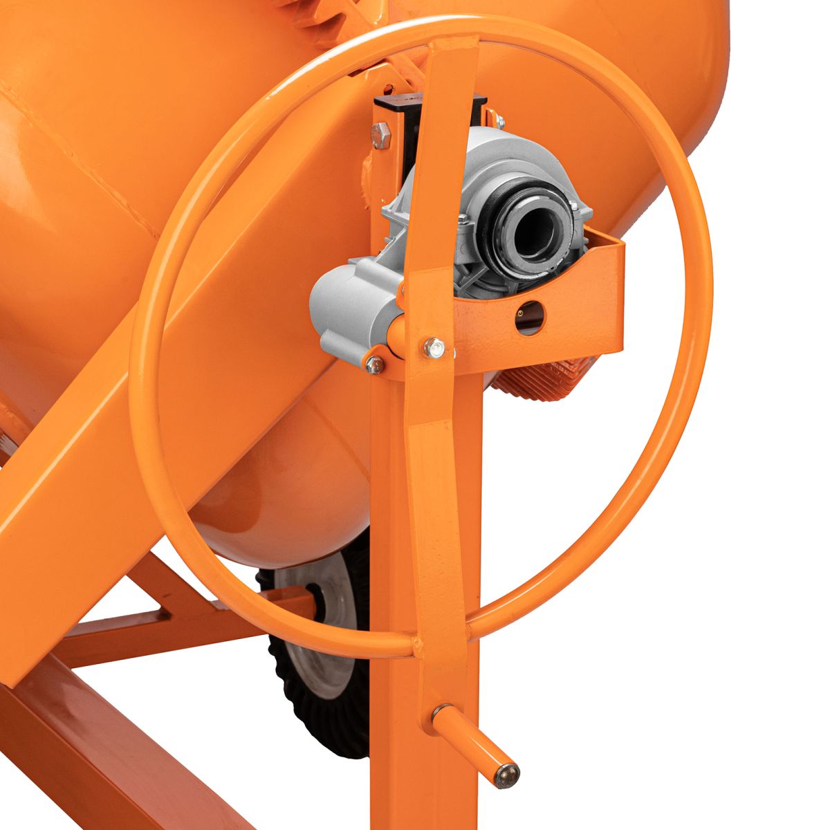 - Простое управление — удобный механизм опрокидывания и фиксации наклона барабана упрощает загрузку, перемешивание и выгрузку смеси.
