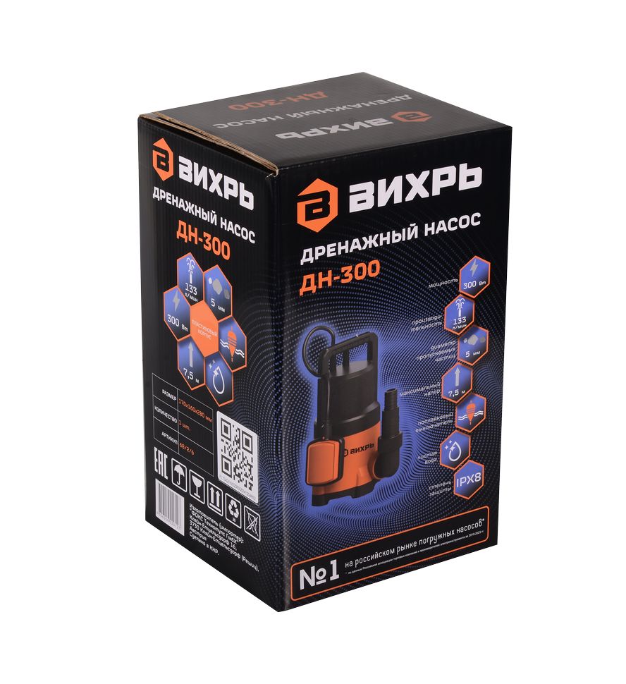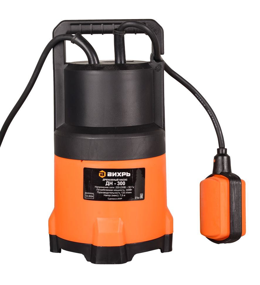 300 Вт, макс. напор – 7.5 м, 133 л/мин, для чистой воды, диаметр пропускаемых частиц – 5 мм, 1.25“