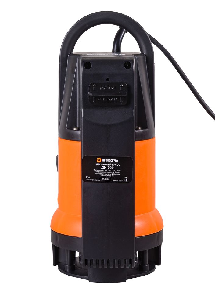 900 Вт, макс. напор – 8 м, 258 л/мин, для грязной воды, диаметр пропускаемых частиц – 35 мм, 1.5“, встроенный поплавок