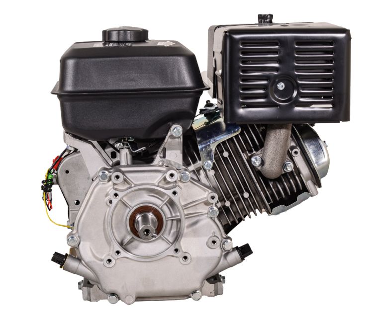 Четырехтактный одноцилиндровый силовой агрегат объемом 389 см³ с воздушным охлаждением работает на бензине 92 АИ. Вместительность топливного бака составляет 6 л. Модель оснащена ручным стартером. Наличие датчика масла предотвращает поломку установки при отсутствии или критически низком уровне масла, в этих случаях запуск невозможен или происходит автоматическая остановка агрегата. Двигатель имеет автоматический регулятор частоты вращения, благодаря чему упрощается работа оператора. Модель имеет усиленную конструкцию, цилиндропоршневая группа защищена хромированным покрытием. Прочный металлический коленвал обеспечивает большой ресурс ДВС и его надежную работу. Использование в конструкции выходного вала диаметром 25 мм со шпонкой обеспечивает более высокую прочность фиксации деталей, передачу большего крутящего момента. Вес агрегата составляет 30,38 кг.