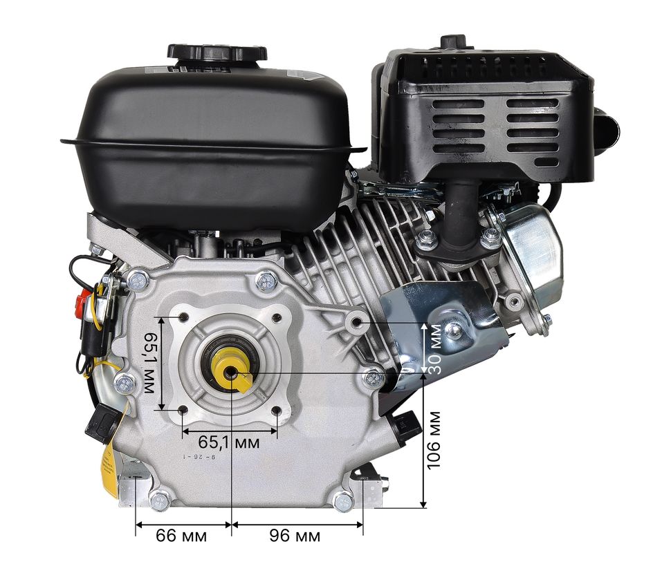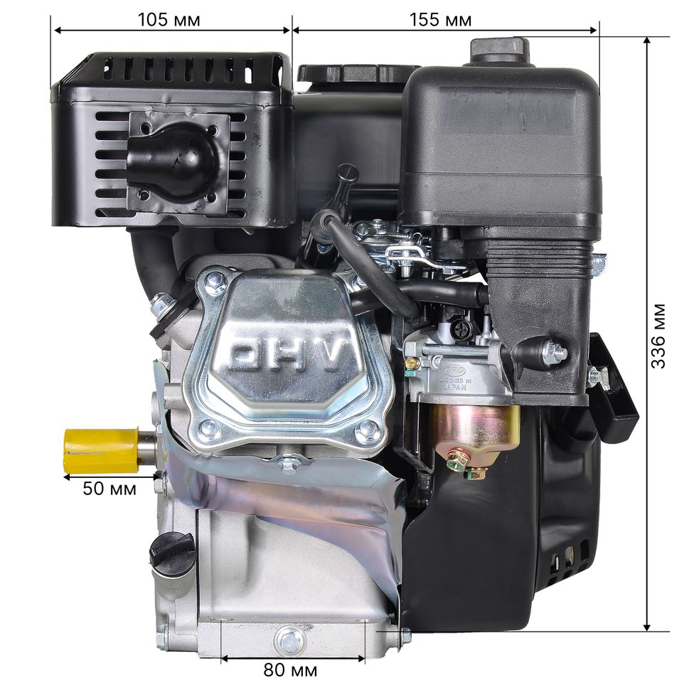 7 л.с., четырехтактный, ручной стартер, топливный бак – 3.6 л, выходной вал - шпонка, 20 мм