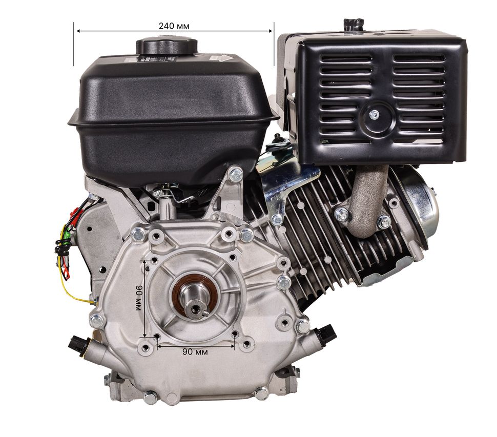 13 л.с., четырехтактный, ручной стартер, топливный бак – 6.0 л, выходной вал - шпонка, 25 мм