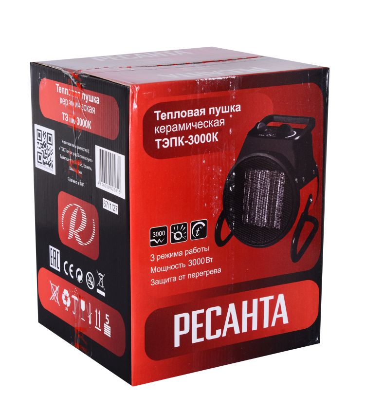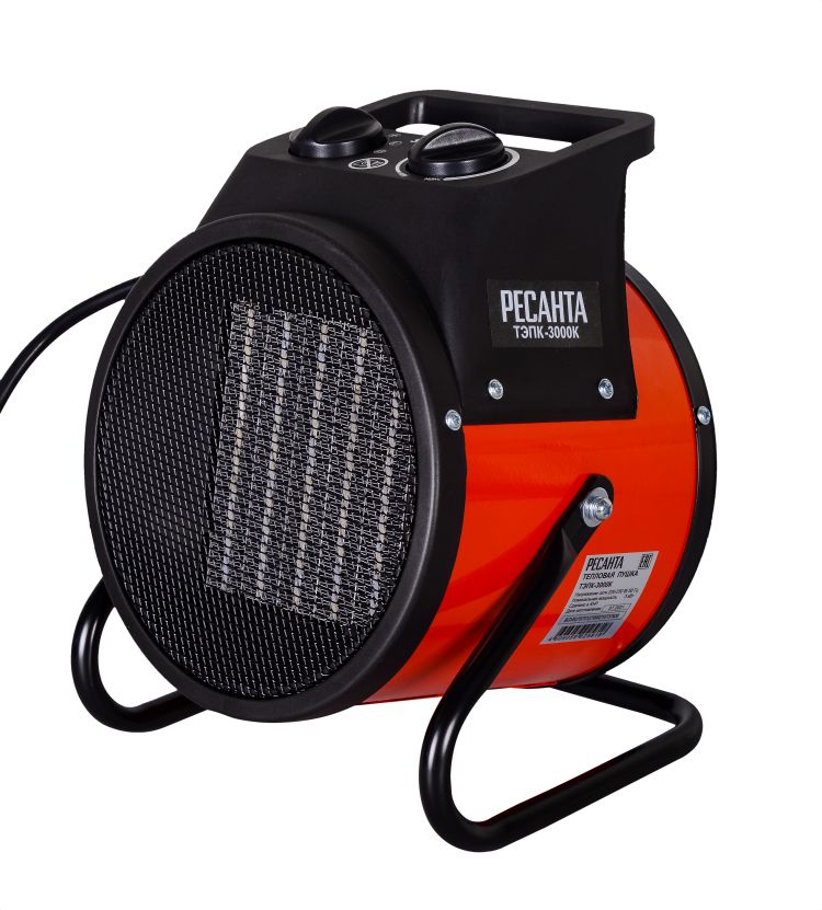 Тепловая электрическая пушка РЕСАНТА ТЭПК-3000K предназначена для вентиляции и обогрева жилых и производственных помещений, складов, гаражей, а также для обогрева и сушки в строительстве.