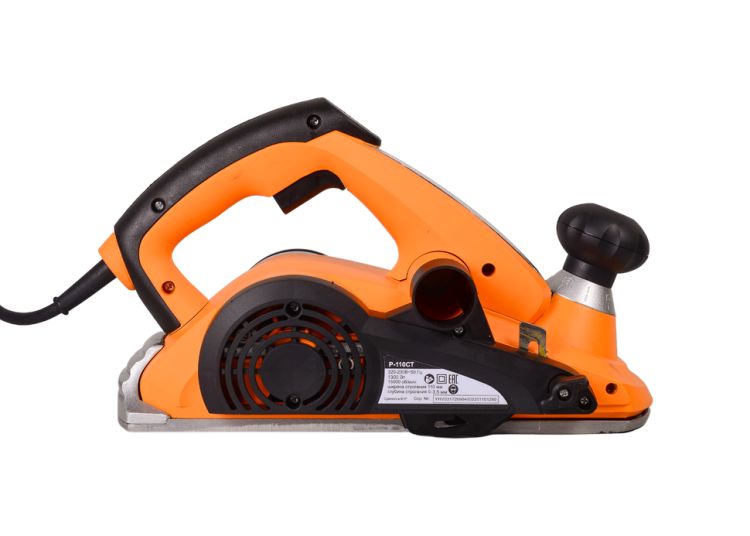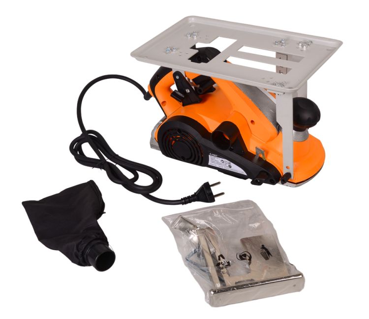 Для поддержания рабочего места в чистоте, инструмент оснащен патрубком для отвода пыли. С помощью широкой рукоятки можно не только крепко удерживать инструмент во время работы, но и регулировать глубину строгания от 0 до 3 мм. Для удобства работы продолжительное время на рукоятке предусмотрен фиксатор пусковой клавиши. Воздушное охлаждение исключает возможность перегрева в течение работы.