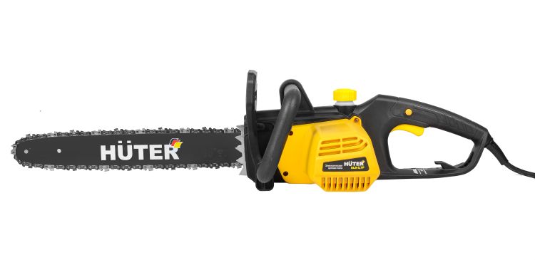 Отличительными особенностями электропилы Huter являются простота и удобство в работе, ведь она не требует заправки топливом и работает от сети 220В. Также стоит отметить низкий уровень шума, создаваемый при работе, а также полное отсутствие выхлопных газов. Это означает, что вы можете использовать пилу не только на улице, но и в помещении при ремонтных и строительных работах. Вы можете легко регулировать натяжение цепи с помощью винта, расположенного на корпусе справа. Прямая передача мощности - проста и надежна. К характеристикам, обеспечивающим комфортное пользование инструментом, также можно отнести автоматическую смазку цепи. Чтобы вы смогли определить уровень смазки для цепи, в корпусе есть смотровое окошко с делениями. Единственная особенность - это недостаточная мобильность, ведь пользоваться инструментом можно только в непосредственной близости от розетки переменного тока 220В. Этот легко исправить, используя переноску (с кабелем подходящего сечения!) или бензогенератор Huter. Для электропилы ELS-2,7P подойдут цепи со следующими параметрами: количество звеньев 57, шаг цепи 3/8, толщина ведущего звена 1.3, шина 161.