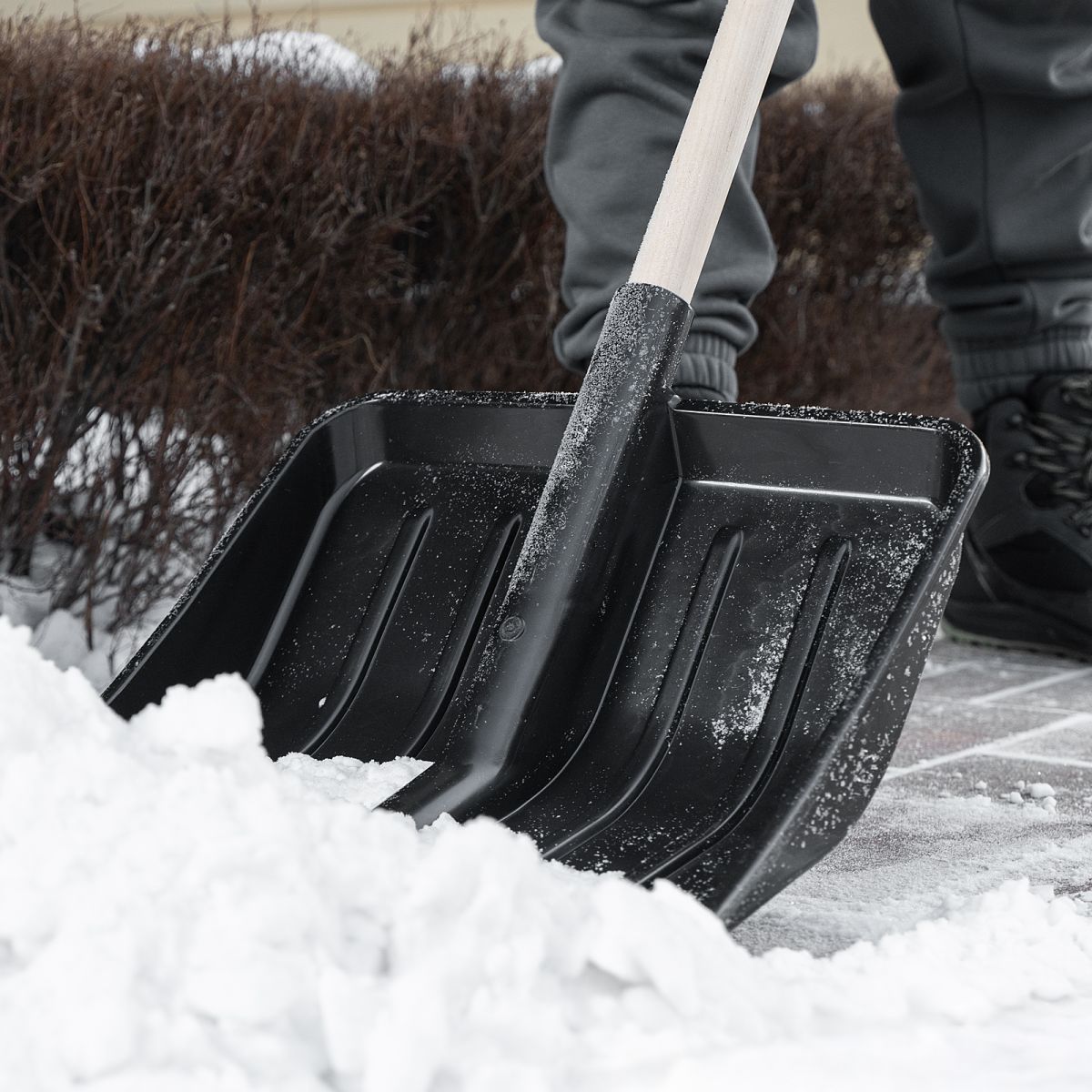 Лопата для уборки снега 61688 размером 405 х 410 х 1470 мм, с деревянным черенком, выполненная из полипропилена, позволяет очистить дорожки рядом с домом, выезд из гаража, парковочное место и т.д. Обеспечивает комфортную работу без усталости, а за счет длины 1470 мм позволяет снизить нагрузку на спину. Поставляется в разобранном виде (ковш и черенок).